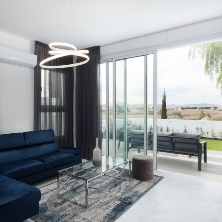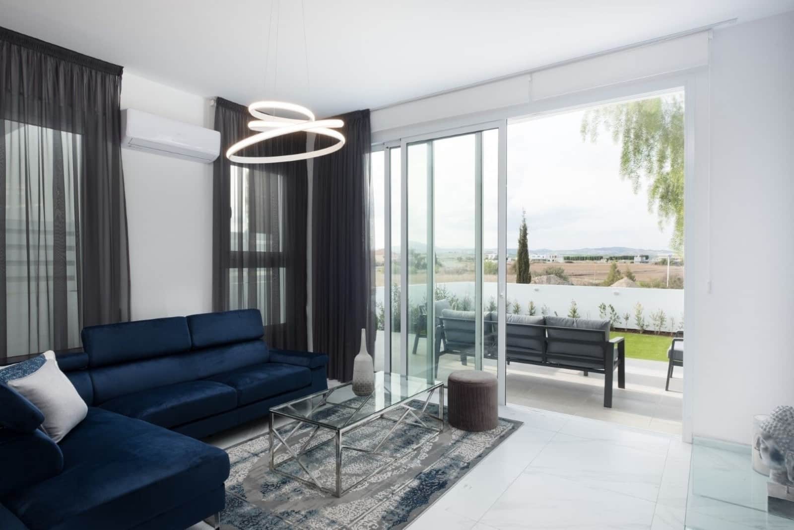 4 Bedroom Corner Detached Villa in Dromolaksia Larnaca. The villa provides the option to have a private pool, which can be a great addition for relaxation and entertainment. This is an energy-efficient feature that can help reduce utility costs. Provision for air conditioning is available, ensuring comfort in different seasons. The bedrooms are described as spacious and modern, providing a comfortable living environment. The use of neutral colors and patterns creates a calm and relaxing atmosphere. The inclusion of modern minimal furniture suggests a contemporary interior design style. Efficient use of space is emphasized, ensuring practicality. This feature offers ample storage space. Master Bedroom with En-suite Bathroom: The master bedroom includes an en-suite bathroom, providing added convenience and privacy. The project incorporates a unique combination of glass, stone, and timber materials. It emphasizes rectangular forms and horizontal and vertical lines, suggesting a modern and stylish architectural design. Large openings with glass doors lead to spacious verandas and gardens, which can be great for outdoor activities and enjoying the surroundings.