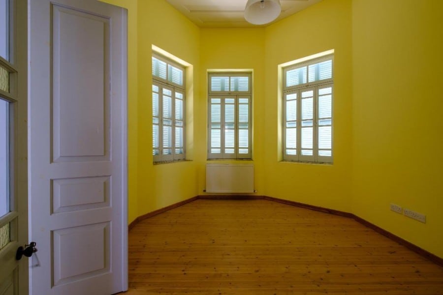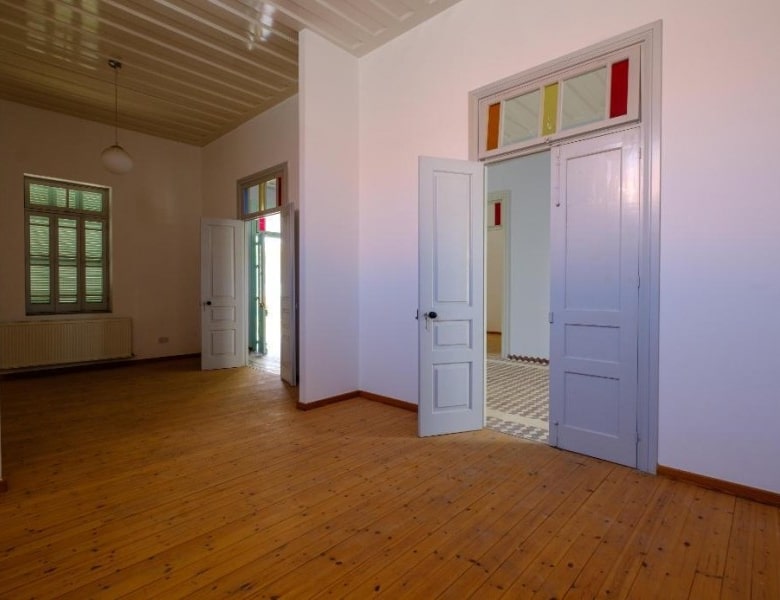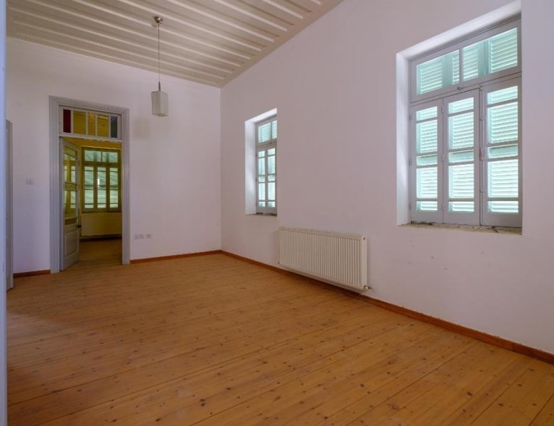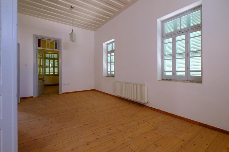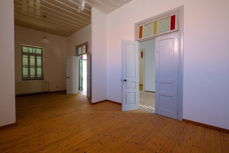 The property is a listed single-storey house with an incomplete modern extension located in Chrysopolitissa, 130m from the church of the same name. The extension was constructed in 2009 during a renovation. It remains incomplete. The house features an internal area of 355sqm, 33sqm of covered verandas, 51sqm of uncovered verandas, as well as a parking area. It has 4 bedrooms and 3 bathrooms. The ground floor includes the entrance hall, dining room, living room, sitting area, kitchen, cellar, laundry room, staircase, and guest WC. The upper floor comprises four bedrooms (one of which has an en suite bathroom) and an additional shared bathroom.