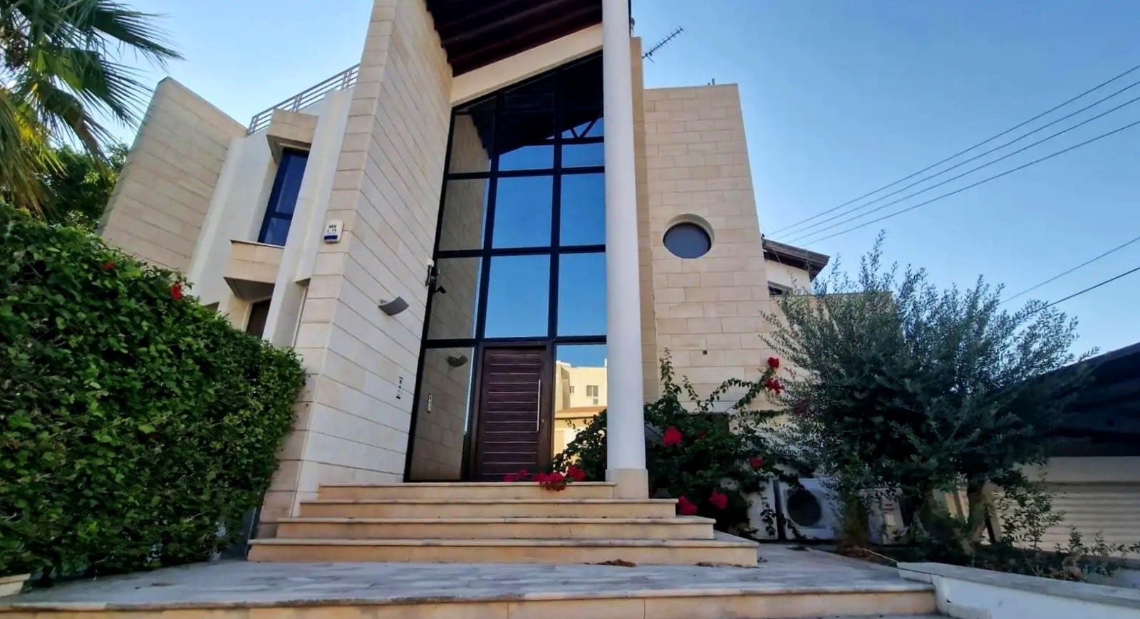 Discover elegance and comfort in this stunning 5-bedroom home with a distinctive architectural design. The spacious two-level living room features high ceilings and stained-glass tinted windows, creating a bright and inviting space. The modern kitchen and dining area open to a terrace with a private swimming pool, perfect for relaxation. The first floor includes a second living room with veranda access, three bedrooms (one en-suite), and a separate bathroom, while the second floor offers two more bedrooms, a dressing room, a laundry room, and a toilet.Built with high-quality materials, including parquet floors and natural wood accents, the home is equipped with central heating, air conditioning, and a video surveillance system. The 511m² plot is beautifully divided into four zones: a poolside terrace, BBQ area, garage with automatic gates, and a lush green relaxation space.Located in a prime area, all necessary infrastructure—schools, supermarkets, banks, pharmacies, and beaches—are just 3-10 minutes away by transport. Recently renovated and move-in ready, this home is a rare find!