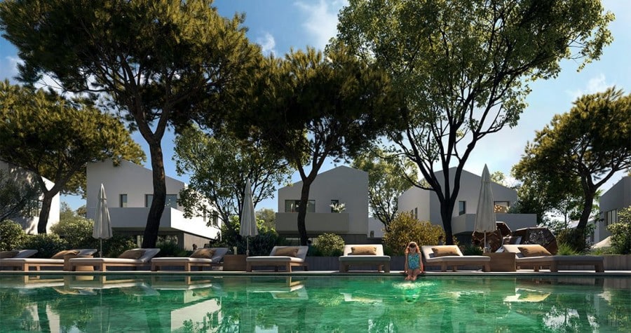 A large gated community complex with common and private swimming pools, gorgeous landscaped gardens and overlooking stunning views of a natural environment only in 300 meters to endless beaches The villas establish the standard for premium living with it’s warm minimalism interiors and impressive indoor facilities for permanent living.