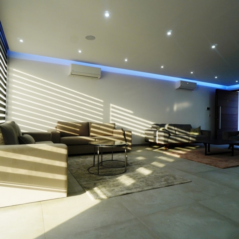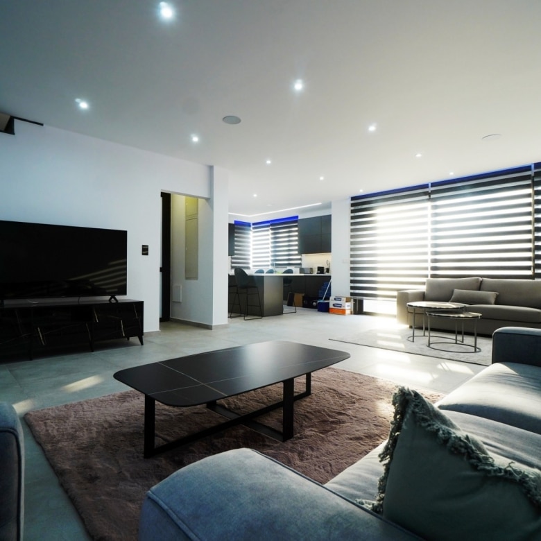 A stunning, modern smart home in the in Pyla, Larnaca, just 2 km from the beach. This newly built (2024) property boasts a 324 sqm plot with 236 sqm of covered area, featuring 4 spacious bedrooms, 3 bathrooms, and a private swimming pool. The home includes covered parking, a smart system, indoor and outdoor sound systems, and energy-efficient photovoltaic panels. Additional amenities include a water pressure system with heating and a rooftop garden offering breathtaking views of the Mediterranean Sea and Larnaca City—perfect for relaxation or entertaining.