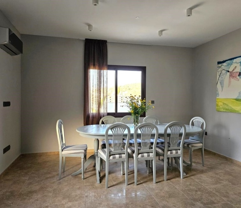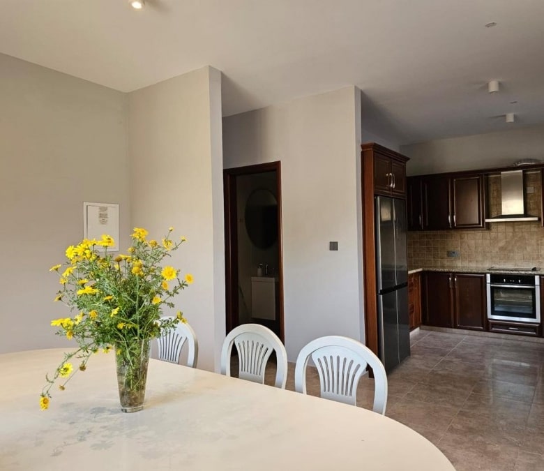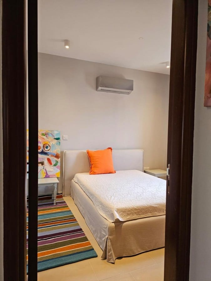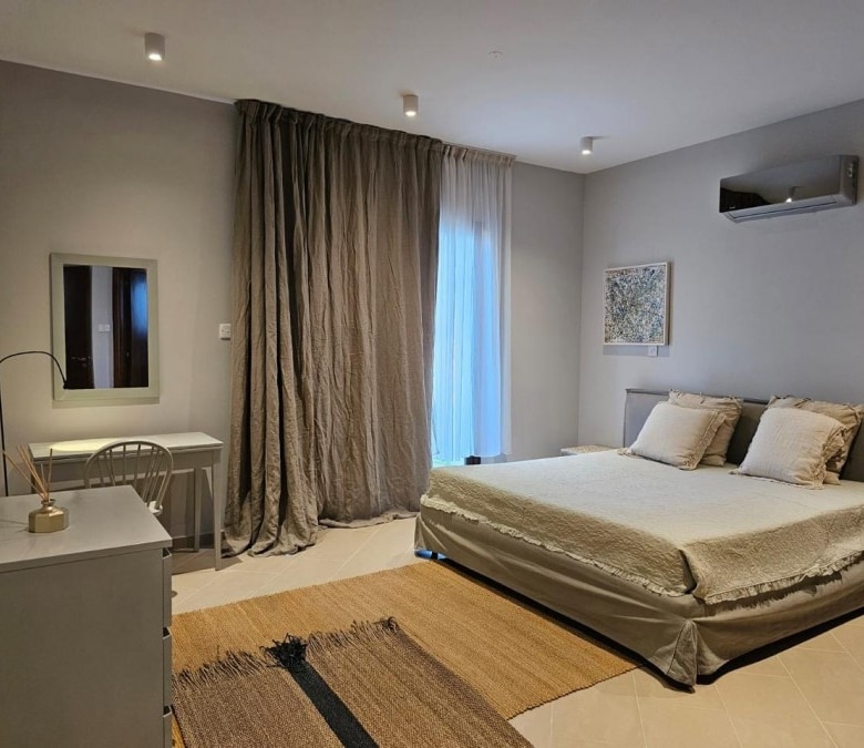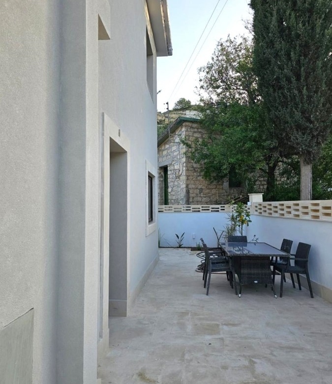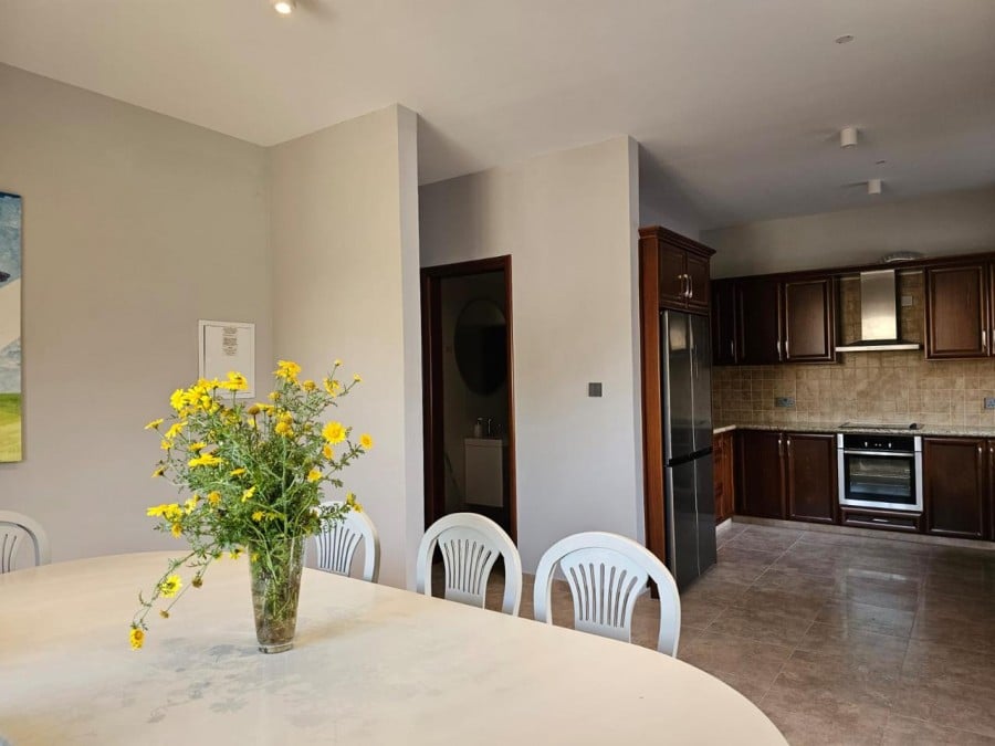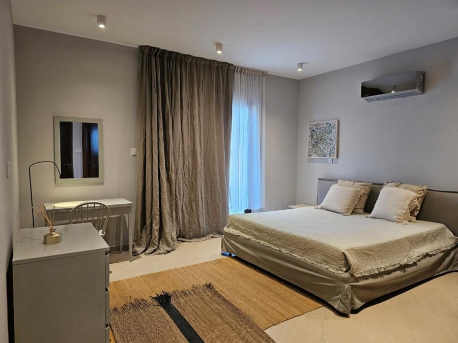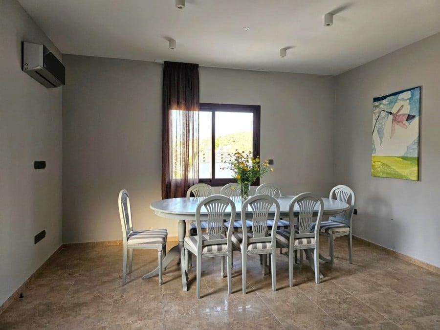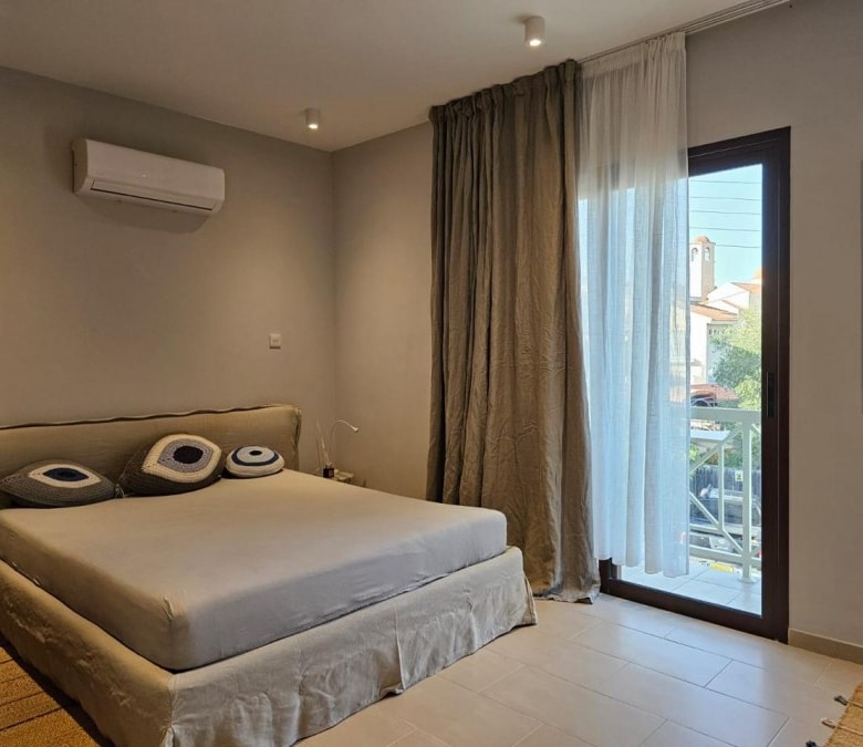 Discover this beautifully renovated 3-bedroom house in the serene area of Ag. Tychonas. Approximately 15 years old, this home has been freshly updated with new furniture, a fitted kitchen, and newly planted greenery surrounding the property. Situated on a quiet road with only a few houses and a cul-de-sac, it offers stunning views of the sea, village, and hills.
