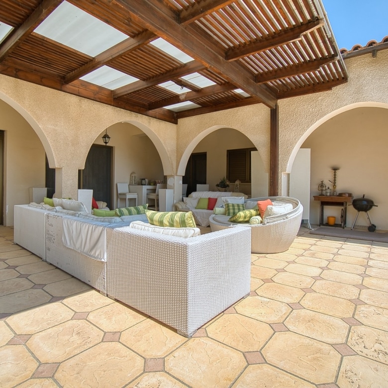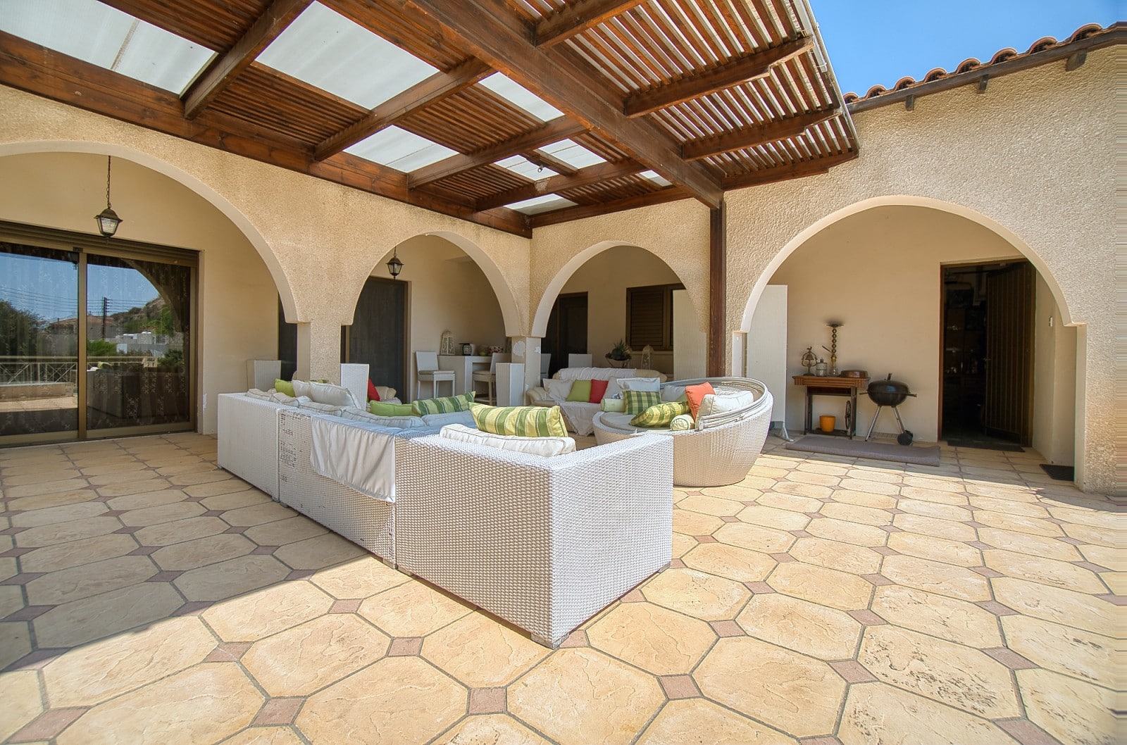 Beautiful spacious 3 bedroom villa with huge landscaped garden, private pool and quite neighborhood is for sale in the area of Agios Tychonas. There is large separate kitchen, fully equipped and furnished with sitting room, 3 big bedrooms (master bedroom with walk-in wardrobe and bathroom), main bathroom with bathtub and shower, Guests WC near the sitting room on the ground floor. Extra guest WC and shower is outside on the veranda part, near the swimming pool. Storage room / Laundry. From both floors there is beautiful Seaview and Mountains view. Perfect property for those, seeking the quite privacy, with spacious plot and appreciates quality finishes of the house made for own use.