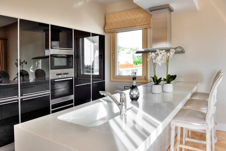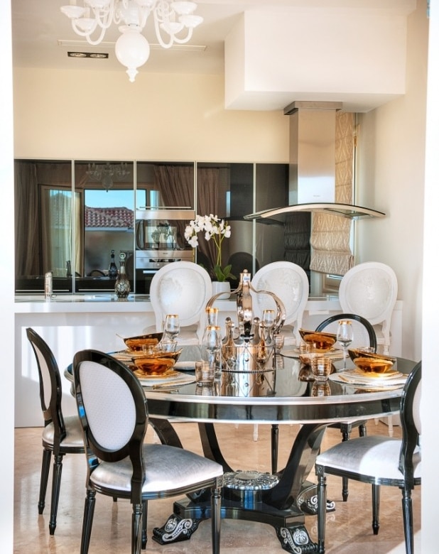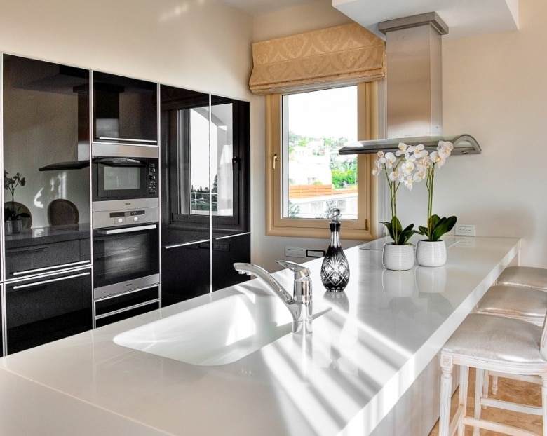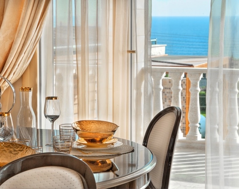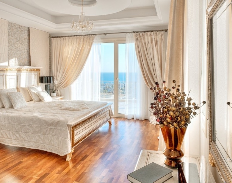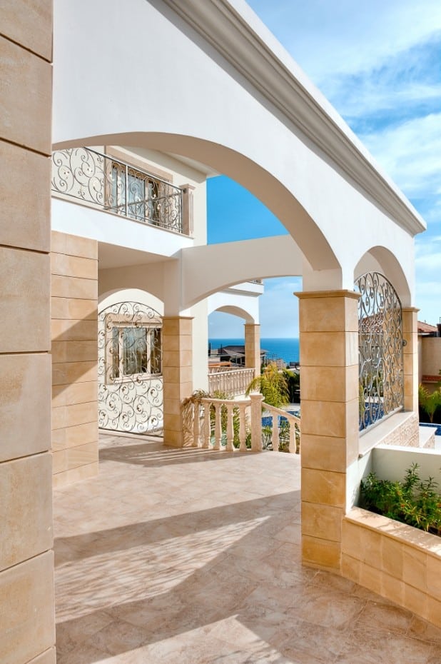 This villa is located in one of the beautiful and prestige areas of Limassol. It is close to 4-5* hotels and beaches, has marvelous sea views, and high net worth individuals in the neighborhood. The villa consists of 4 large bedrooms, each with its own bathroom, it is fully furnished, has a garden, and a central control of light and shutters. There is branded interior material such as Versace and Villeroy & Boch. Other distinguishing features are the infinity swimming pools, spa, and sauna.