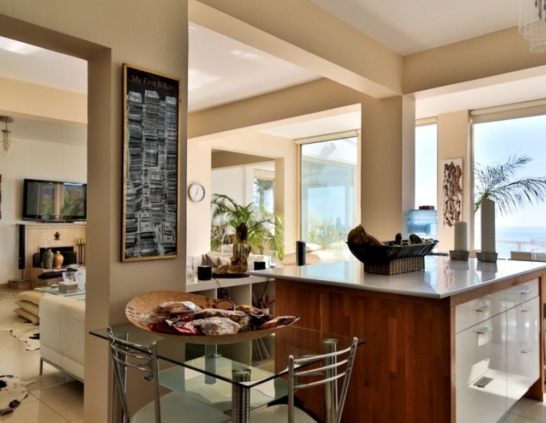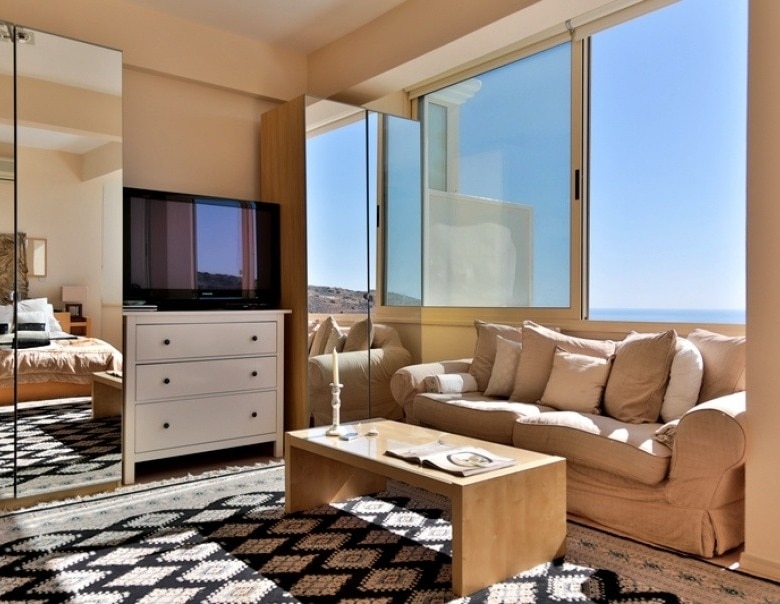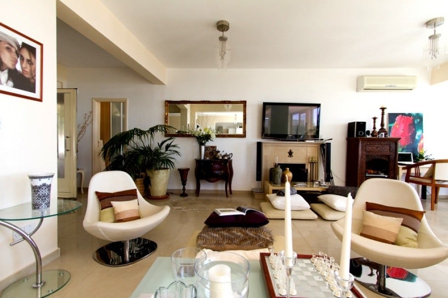 Luxurious 6 bedroom villa with breathtaking unobstructed sea and mountain views situated in Agios Tychonas area. The house consists of 6 ensuite bedrooms, large sitting room, open plan dining area, modern kitchen fitted with necessary kitchen appliances and spacious veranda. Equipped with a fireplace, built in plasma TV, double glazing windows, air conditioning system, has sauna, covered parking space, private swimming pool, patio and landscaped mature garden. The villa also has a roof garden with sunbeds and gym. Quiet residential area offering comfortable living.