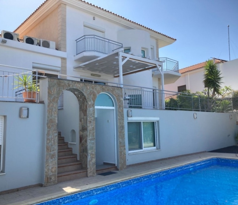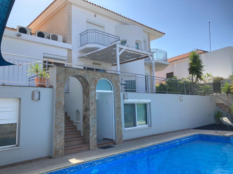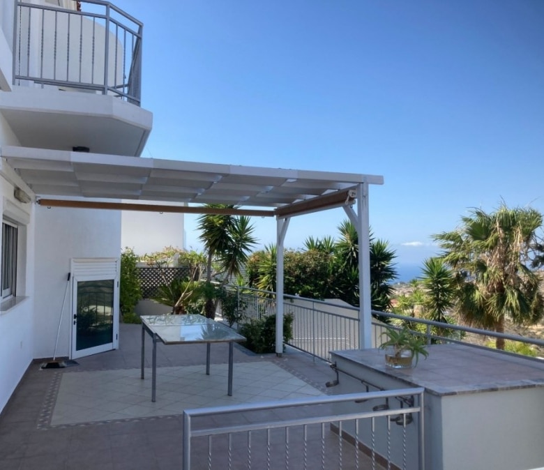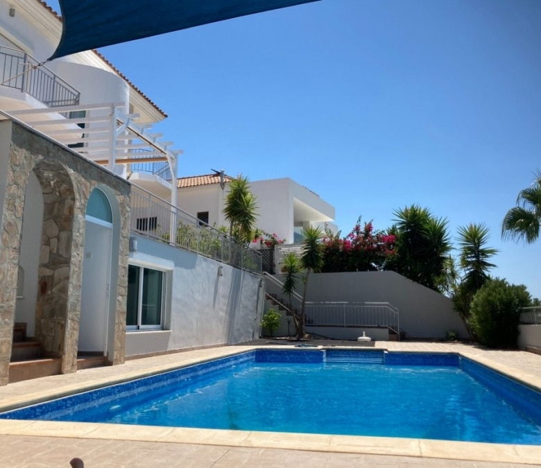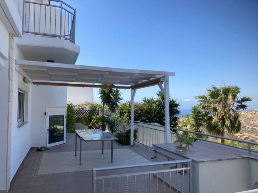 This very cozy 4 (3+1) bedroom villa is located on a hill in Agios Tychonas area and features panoramic sea and mountain view. The house was renovated 2 years ago, has a cozy contemporary interior design. It comprises of 3 bedrooms with 2 bathrooms, 1 guest WC, spacious living room, separate kitchen and housemaid (guest) room. The additional housemaid room with its own bathroom has a separate entrance outside of the house, can be used as a guest room.