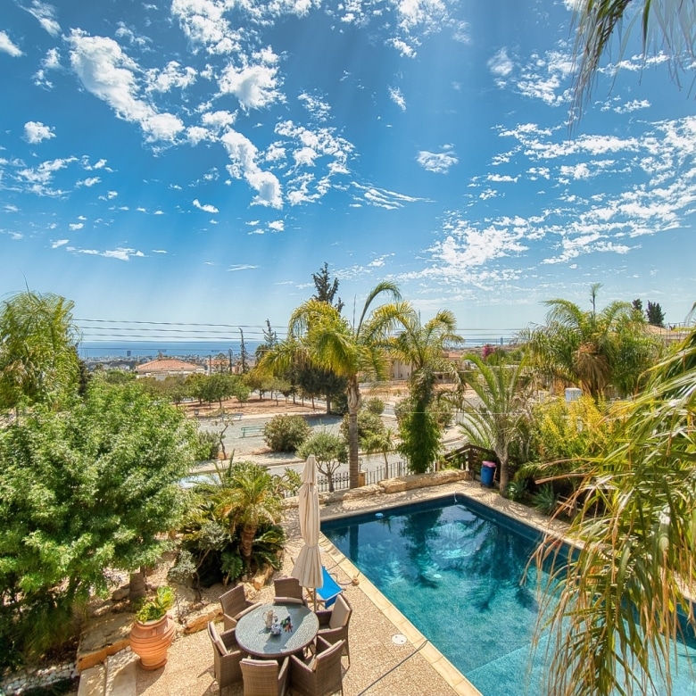 This luxurious villa consists of 2 levels with panoramic views of the Mediterranean Sea with a swimming pool and a large garden. The villa is located on the elevated area of Agios Athanasios, Sfalagiotissa area, Limassol. 10 minutes drive east of the city center, on a quiet residential street with a park next by, only 5 minutes from the coastal avenue. Easy access to the highway linking all major cities on the island. There is a ground floor, a beautiful lobby, a living room, a TV room, a master bedroom with a toilet, 3 bedrooms, 1 bathroom, a maid’s room, a kitchen, large verandas, parking, a swimming pool (5 * 10 m) and a barbecue area. The house is located close to the new Foley Private School and is ideal for families.