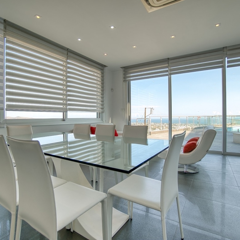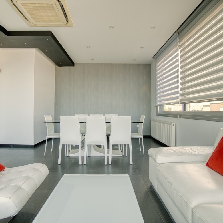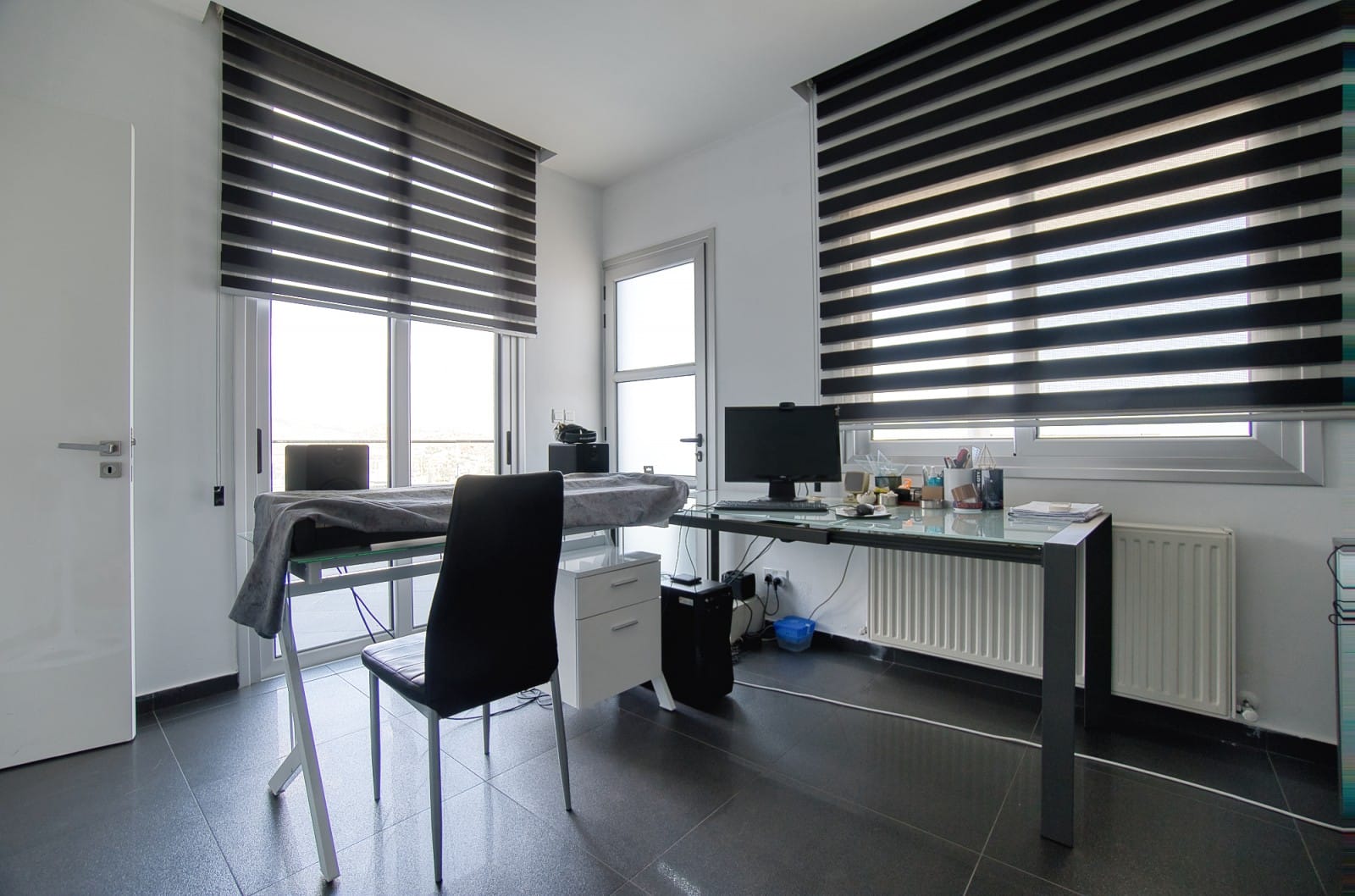 This stunning 360-degree view villa, located in the prestigious Agios Athanasios area (Sfalagiotissa), offers an unrivaled position with panoramic views of the entire city of Limassol. Set on an 860 sqm plot elevated above the road, it provides complete privacy. The villa features three kitchens, including a main kitchen, a small kitchen on the ground floor, and another in the basement. The master bedroom is en suite with a dressing room, and all first-floor bedrooms are equipped with electric shutters. The main bathroom includes both a shower and a corner bath. The basement offers two covered parking spaces, a WC, a small kitchen, a small room, and additional storage. Outside, the ground floor includes two uncovered parking spaces, a 5×10 overflow swimming pool with 8 jets for hydro massage, a BBQ area, and a garden. The property is equipped with petrol heaters, air conditioning units in all rooms, and a water softener system, ensuring year-round comfort and convenience.