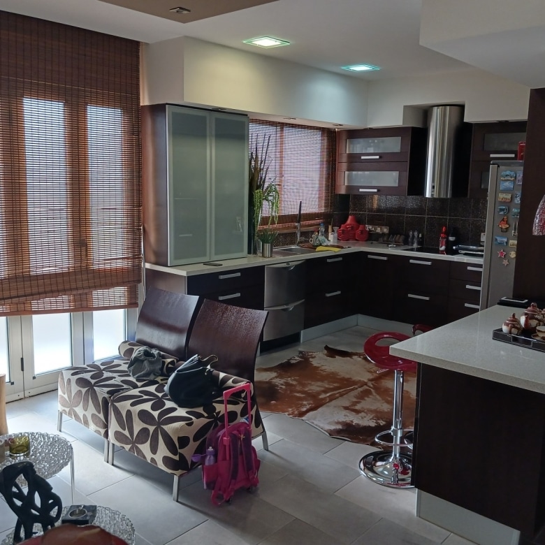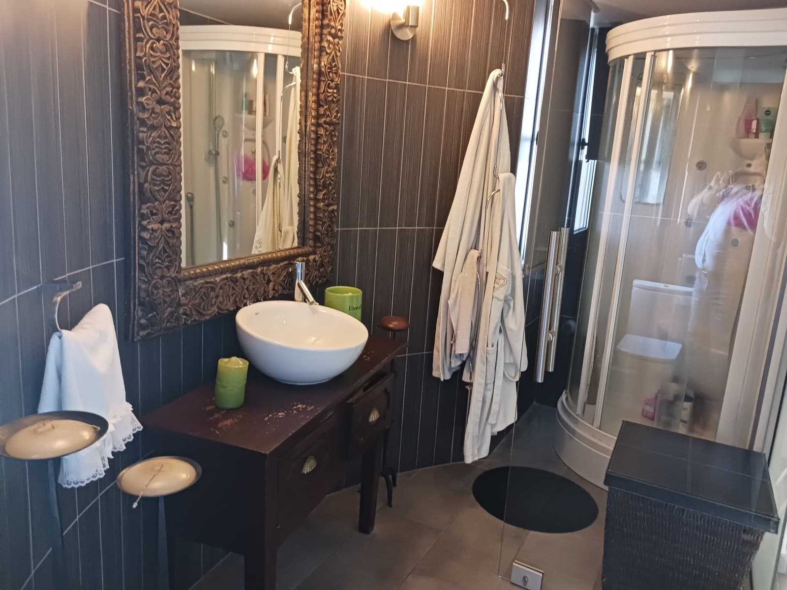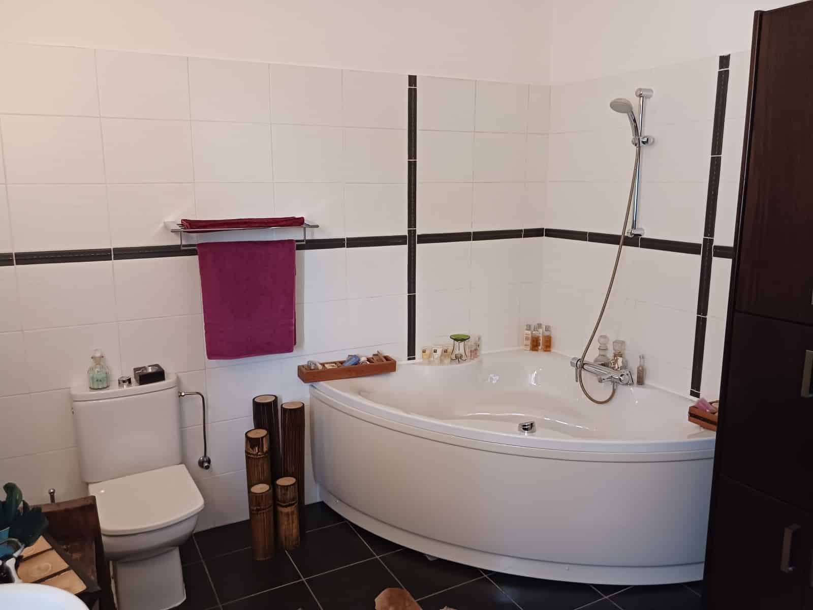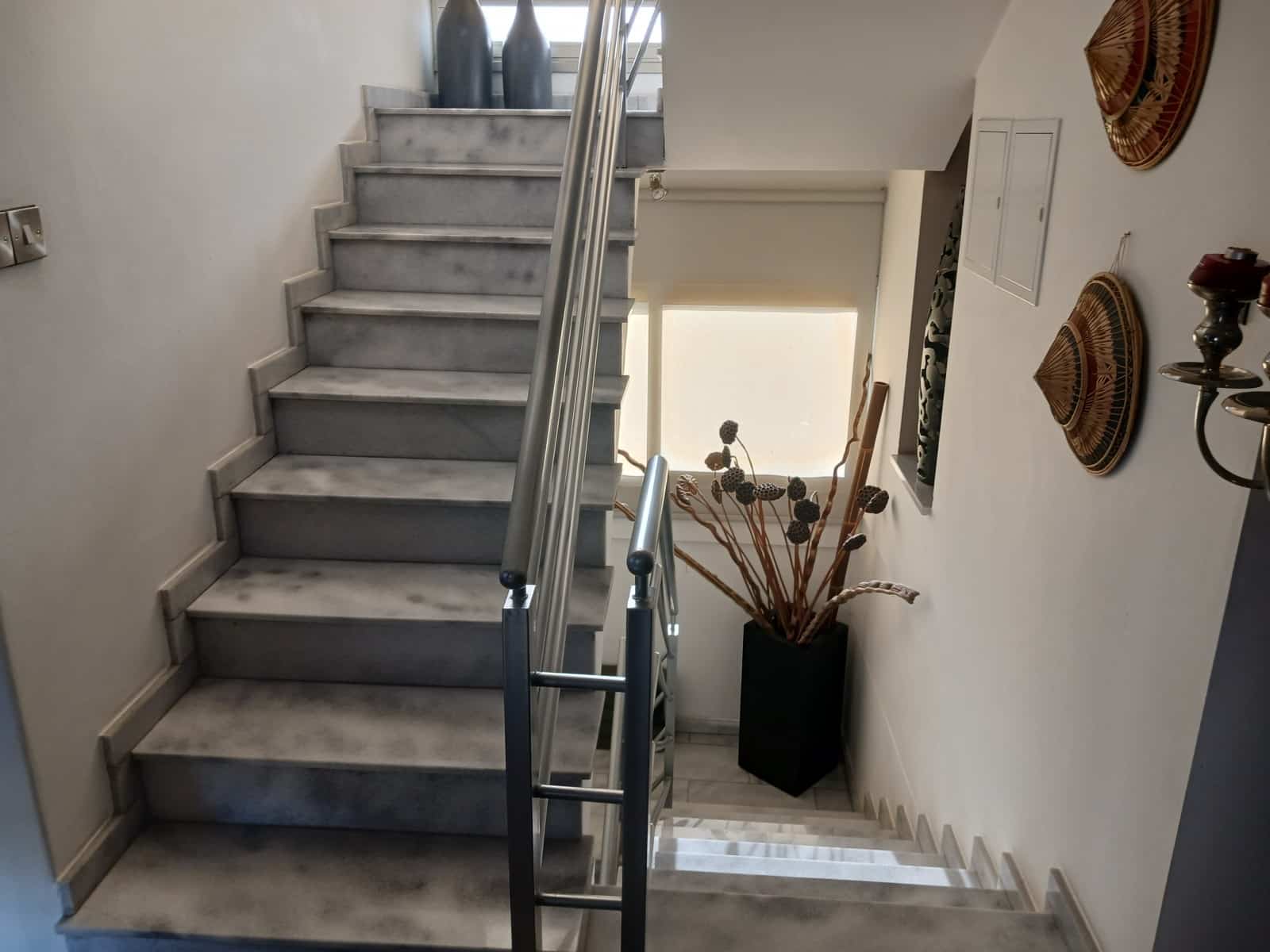 This well looked after villa boasts many features, such as drop ceiling lighting throughout the house, full air conditioning as well as a fireplace for cold winters. There are lovely sea and mountain views from the villa . It is situated in a quiet neighborhood and easy access to the highway, beach and to town. Downstairs is a modern open plan kitchen ,lounge and dining room with a guest toilet. Upstairs are 3 bedrooms . The Master bedroom is en suite and a has a large walk in closet. The other 2 bedrooms share a bathroom with a large jacuzzi bath. There is also an attic for convenient storage. The basement is great for storage and also big enough to convert into a small living area. There is covered space for 2 cars. There is also has an alarm system throughout.