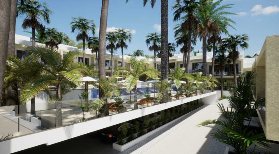 The two-bedroom houses are ideal for small families or couples, featuring an open-concept layout and generous bedroom sizes with ample closet space. Each home includes a private outdoor area for enjoying the surroundings. The three-bedroom houses cater to larger families, with spacious living areas, well-appointed bedrooms, and a master suite with an en-suite bathroom and walk-in closet. The modern kitchen and open-plan living area are perfect for entertaining.