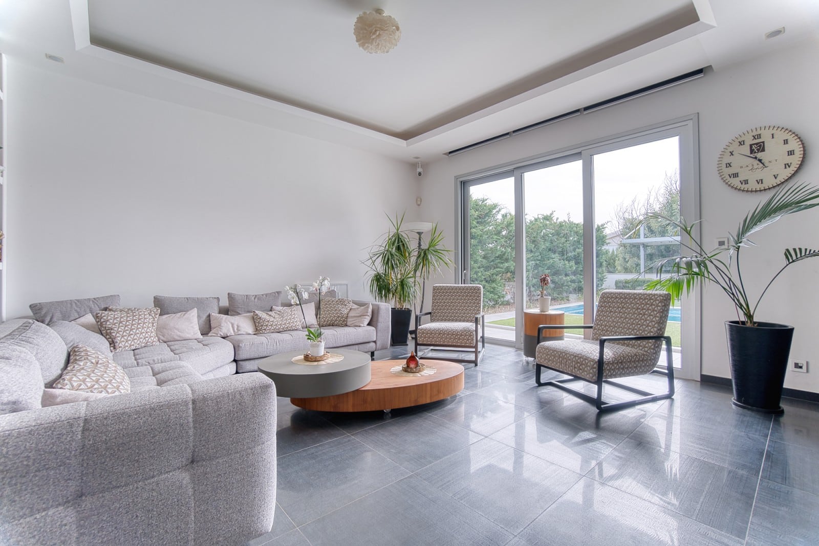 This stunning 6-bedroom detached villa in Erimi, Limassol, offers a luxurious and modern living experience, combining elegance, comfort, and functionality. Situated next to a public green area, the villa provides 460m² of indoor space on a 669m² plot, featuring high-end finishes and state-of-the-art amenities. The spacious open-plan living areas create a seamless flow, enhanced by a modern fitted kitchen with an island, premium appliances, and ample storage. The master bedroom includes a walk-in wardrobe and an en-suite bathroom with a Jacuzzi, while additional bedrooms offer privacy and comfort. A maid’s room with a private bathroom, a dedicated office, and a playroom add to the villa’s practicality.