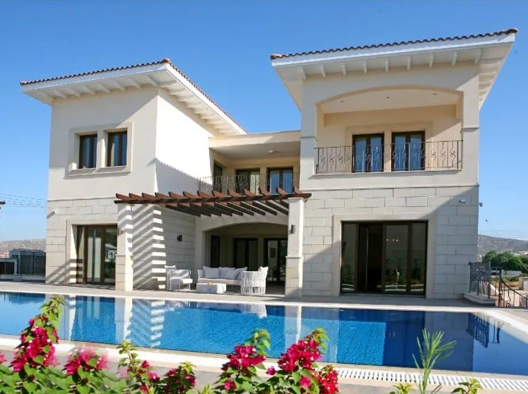 This exclusive & individually designed villa, with title deeds in the sought-after area of Kalogiri is built to the highest specifications on an elevated plot on the eastern fringes of Germasoyia, with distant views of the Mediterranean sea. The five-bedroom villa has a private pool and landscaped gardens.