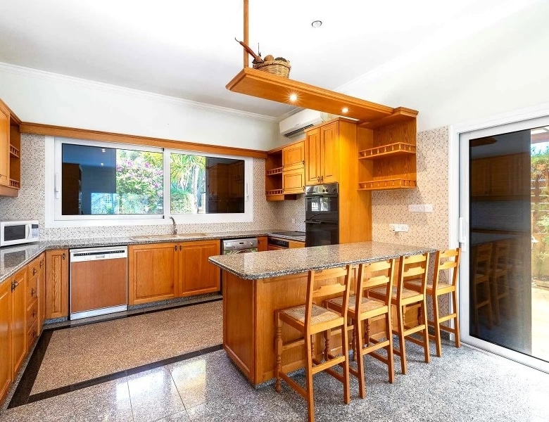 This elegant two-story house with an extra basement area is situated on a 1000 sqm plot in the prestigious Kalogiri area of Limassol. The area is known for its tranquility and prestigious neighbours, as well as its proximity to all necessary amenities. Elite schools, shops, pharmacies, and cafes are just a few minutes’ drive away.