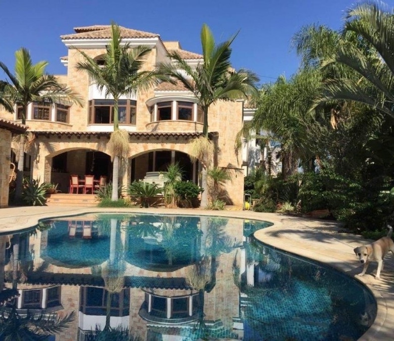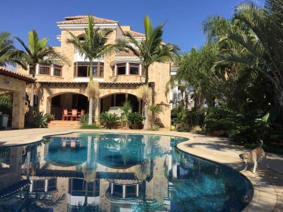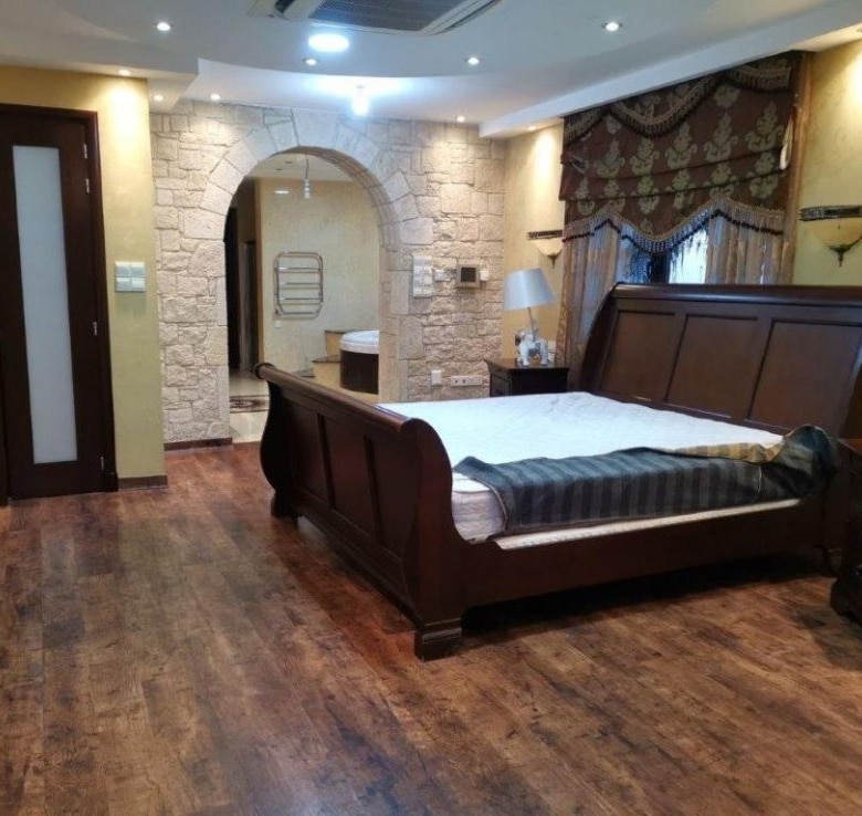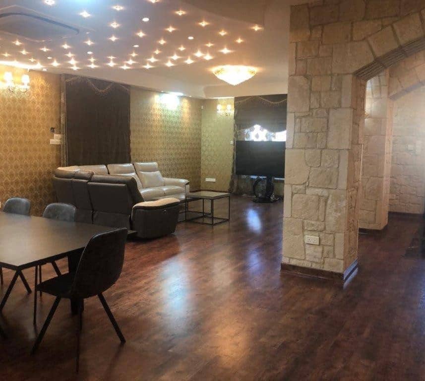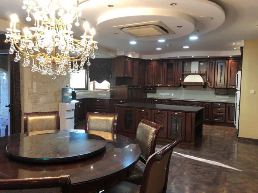 This luxury 5 bedroom villa is located in Agios Spyridon area, in close proximity to the high way with easy access to all the amenities. This unique villa It is fully furnished and equipped with the highest standards offering full privacy. It sits on a plot of 1,200m² and covers a total area of 705m². The villa is built over three levels – ground floor, 1st level and 2nd level. The ground floor consists of an open plan large living room with a fire place – dining areas, as well as spacious kitchen (including all home appliances) also spacious office area and elevator with access to all floors. The 1st level consists of 5 spacious bedrooms, 2 with en-suite shower W/C and the master bedroom with en-suite spa, shower and W/C. In the family bathroom on the same floor there is walk-in closet, double sink and Jacuzzi. There is also an utility room with wall cupboards and space for the washing machine and dryer and large terraces. On the 2nd level you can find a fitness center with sauna, guest bedroom with en-suite W/C as well as province for a future kitchenette. A beautiful landscape with many trees surrounds the villa and provides ample space and privacy to enjoy the large infinity swimming pool where the pool provides various color patterns in lighting, spa, shower and W/C as well as a barbecue place with a dinning covered area.
