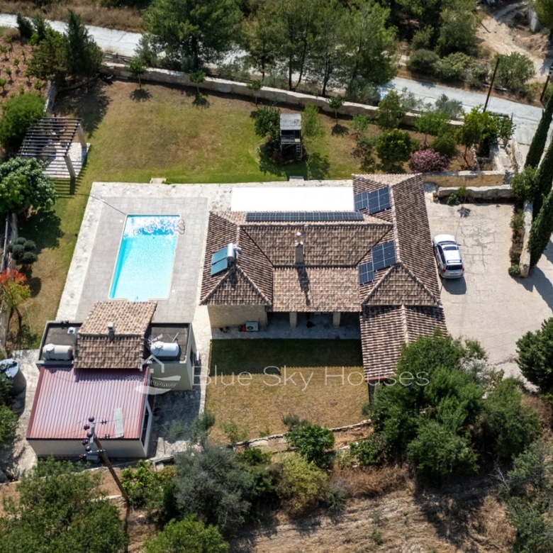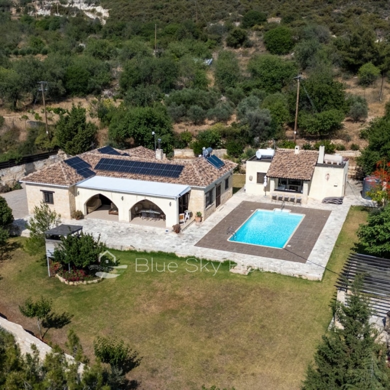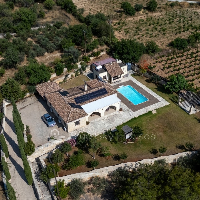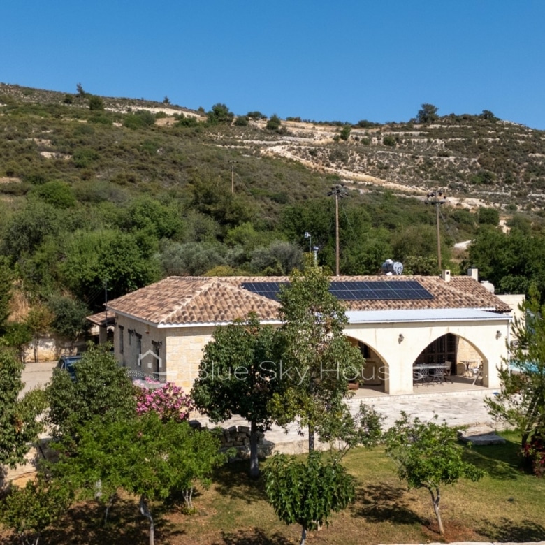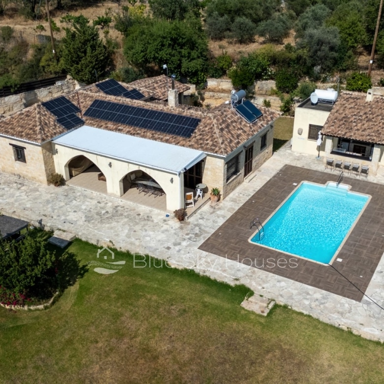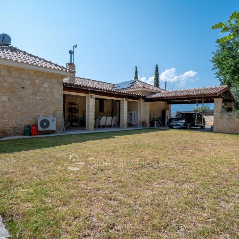 Experience the perfect blend of traditional charm and modern comfort in this beautiful and very stylish 3-bedroom detached stone house, located in the serene area close to one of the most picturesque villages in the Limassol region- Laneia. This exquisite residence, with a total internal surface of 124m², sits on a spacious 2135m² plot, offering a peaceful retreat just less than 30 minutes from the bustling city life.