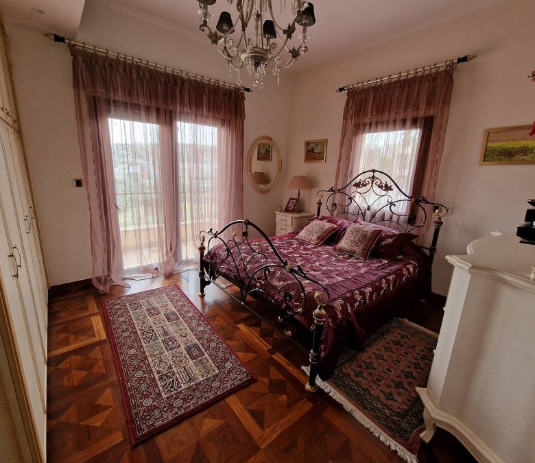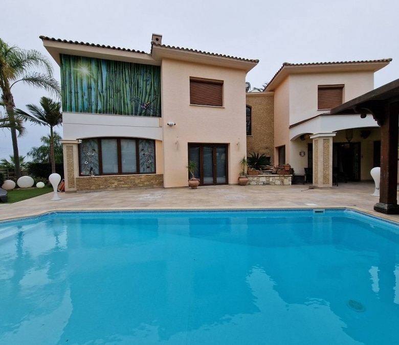 Luxury 5 bedroom villa for sale, located on the hills of one of the most prestigious areas of Mesovounia, overlooking the city of Limassol and the sea. Private heated pool with electric cover. Interior finish with Venetian plaster and exterior finish with grafiato and natural stone. There are electric entrance gates; PVC windows with electric blinds; VRV air conditioners; Central floor heating; Parquet; Smart home system; Handmade wooden kitchen, cabinets and doors; TVs, DVDS, CD changer, DVD recorder, wifi; centralized sound system; satellite dish; Electrical appliances Gaggenau; Furniture (partially), lamps, curtains; Security alarm; CCTV (cameras); Barbecue area with external TV projector.