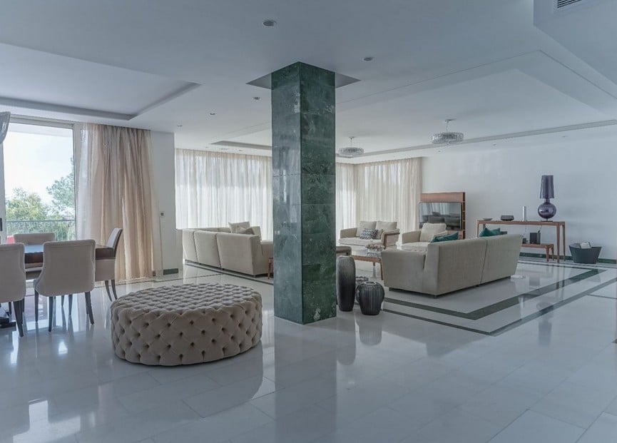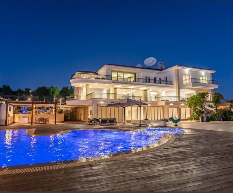 9-bedroom mansion offers an unparalleled living experience with breathtaking panoramic views of both Limassol city and the captivating coastal landscape. This mansion provides an abundance of space, with substantial combined covered areas on the ground and first floors, complemented by a generously sized basement, offering versatility for various purposes.