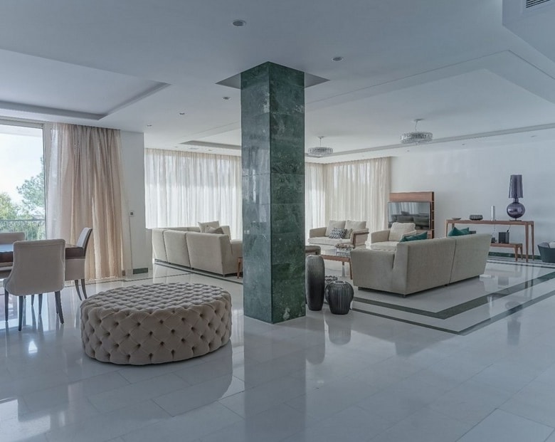 An inviting outdoor BBQ and dining area beckons for memorable gatherings, while a substantial swimming pool and meticulously landscaped gardens enhance the natural beauty of the surroundings and delightful oasis. Additional indoor staff rooms and a small outdoor staff house cater to diverse needs, contributing to the practicality of this exceptional home. The architectural elegance of this property is underscored by captivating details, including a grand spiral staircase and luxurious marble flooring. One of the most alluring features of this mansion is its sweeping panoramic sea views of Limassol, offering a constantly changing backdrop of natural beauty.
