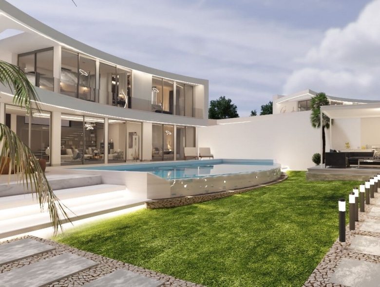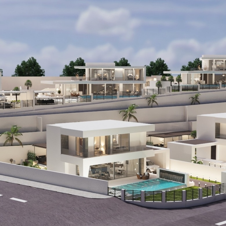 Modern villa with a swimming pool in a new project, Moni – Monagroulli district, Limassol. The project consists of 6 houses. The ground floor accommodates a spacious living room, an open-plan kitchen with high-end appliances, a dining area, two bedrooms and a guest toilet. On the second floor there are two bedrooms, each with its own dressing room and bathroom, with fantastic mountain views. High quality materials are used in construction. Air conditioning and underfloor heating in all rooms. All windows have electric sun blinds. Electric gates to the complex, video surveillance. Home alarm system. Photovoltaic panels for generating electricity. The Smart Home system.