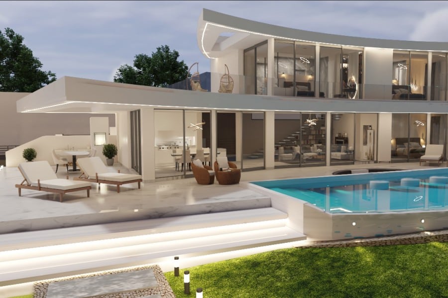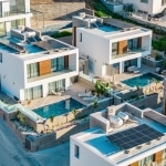 Modern villa with a swimming pool in a new project, Moni – Monagroulli district, Limassol. The project consists of 6 houses. The ground floor accommodates a spacious living room, an open-plan kitchen with high-end appliances, a dining area, two bedrooms and a guest toilet. On the second floor there are two bedrooms, each with its own dressing room and bathroom, with fantastic mountain views. High quality materials are used in construction. Air conditioning and underfloor heating in all rooms. All windows have electric sun blinds. Electric gates to the complex, video surveillance. Home alarm system. Photovoltaic panels for generating electricity. The Smart Home system.