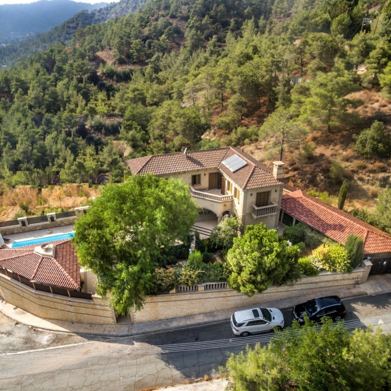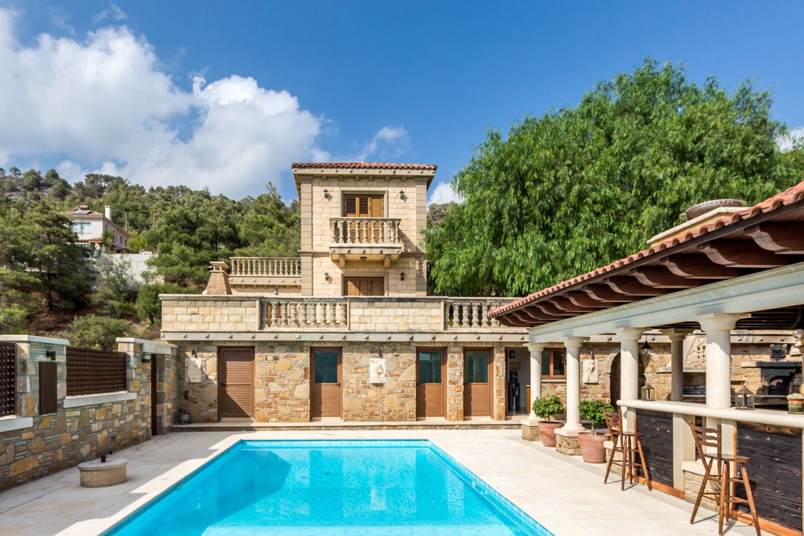 Unique & Tuscan style villa which is covered with a thick stone to impress those who appreciates to enjoy a living in outskirts of Limassol city – Moniatis village. Property offers a beautiful surrounding and quiet ambiance to completely relax and enjoy a quiet neighborhood and quality time. There are four bedrooms , 4 bathrooms , tow kitchen , storage room , living room , sitting room , tow barbecue areas , swimming pool , full furniture , full air-conditions , heating and Electrical devices . The villa is all covered with 8 cm thick of Cyprus stone which is energy efficiency , also all the others areas of villa is covered with stone and many parts are handmade.