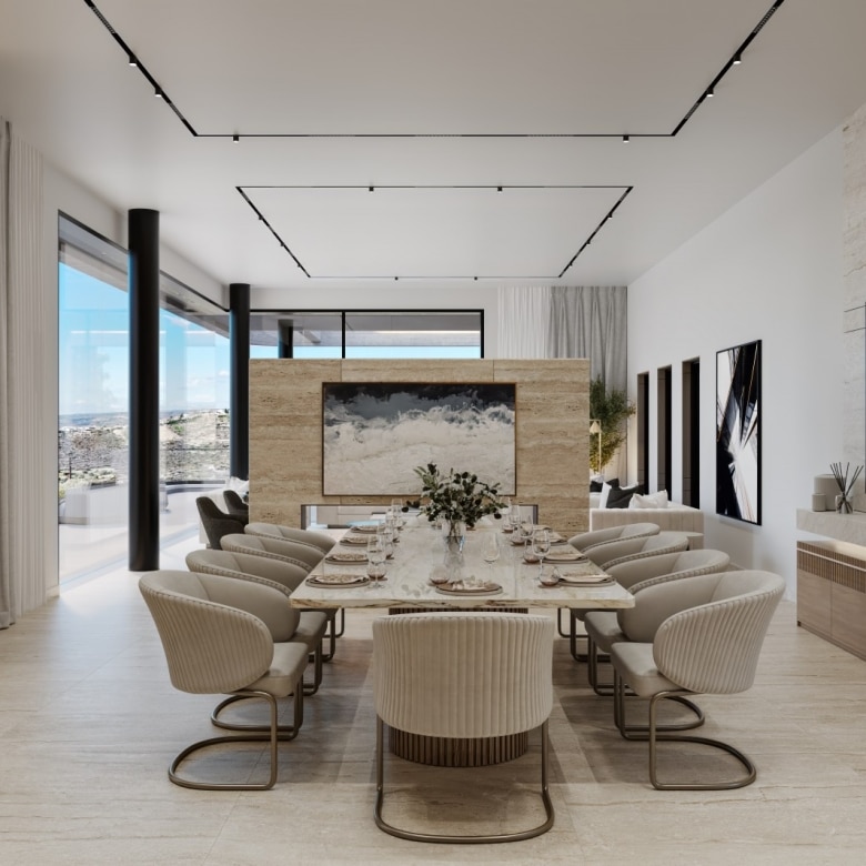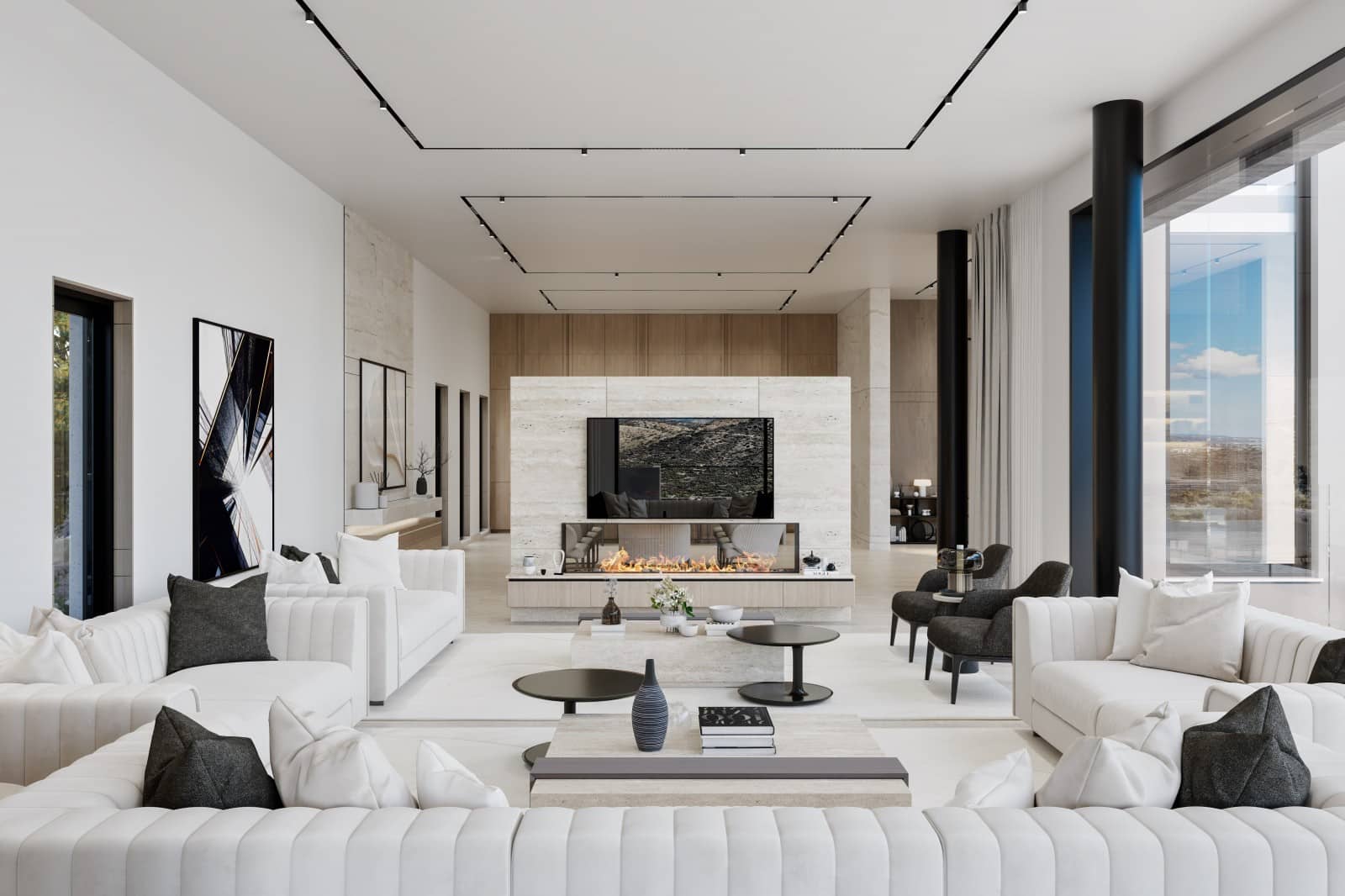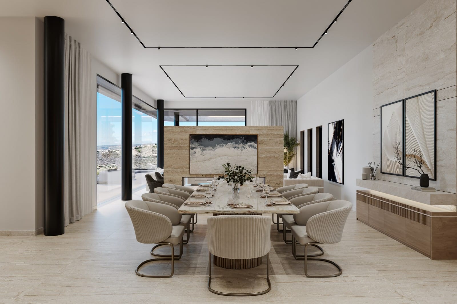 Luxurious 4-bedroom 5-bathroom villa sits on a generously sized plot of 1622 meters with fascinating views of the mountains. It is set in a very quiet neighborhood which consists of modern luxury villas and nature in the prestigious suburb of Limasso, just 10 minutes away from the city and 15 minutes from a selection of beautiful beaches. The villa includes 3 floors connected by an elegant staircase and a lift. The lower floor includes many features and consists of a maid’s room, 3 car parking spaces, an office with access to the garden, a pet spa, a home cinema, a cellar, a lounge area, a sauna, and a gym with access to the garden and swimming pool. The open-plan ground floor consists of a modern, spacious living room, dining area, kitchen, kitchenette, guest toilet, and 3 grand bedrooms with an en-suite bathroom. The upper floor consists of a large bedroom and access to the roof garden, which is the perfect place to enjoy the most spectacular mountain view and sea view.