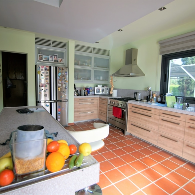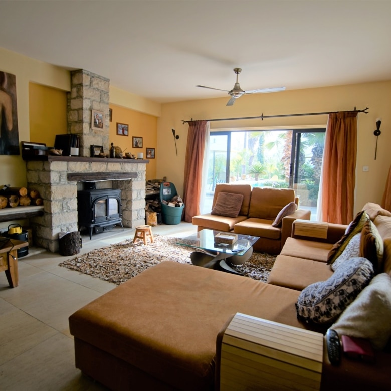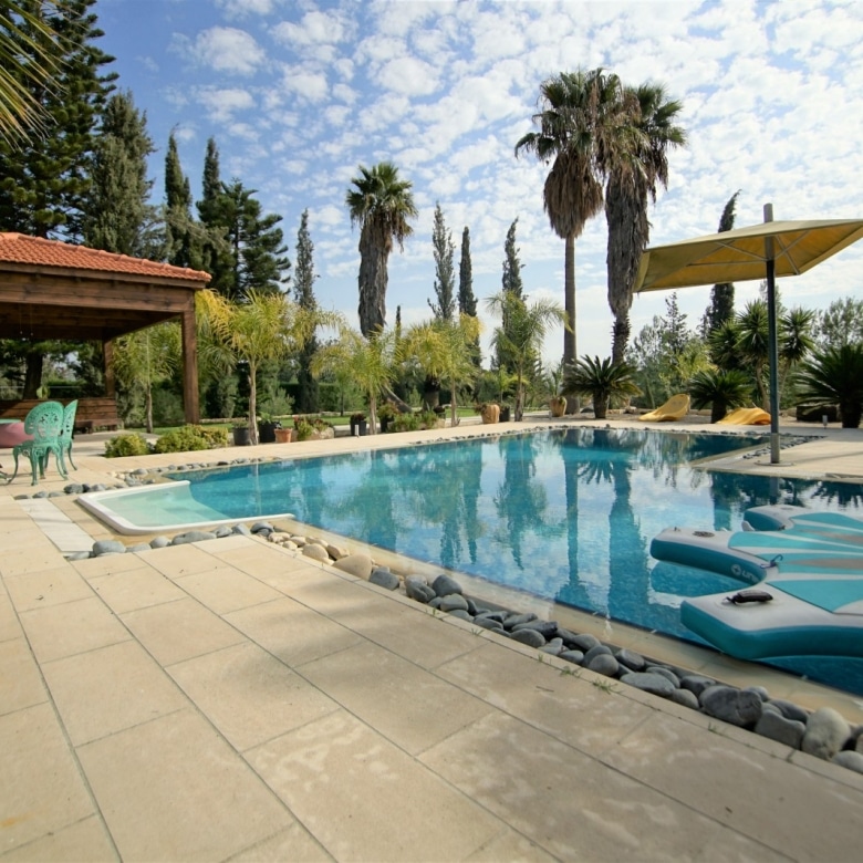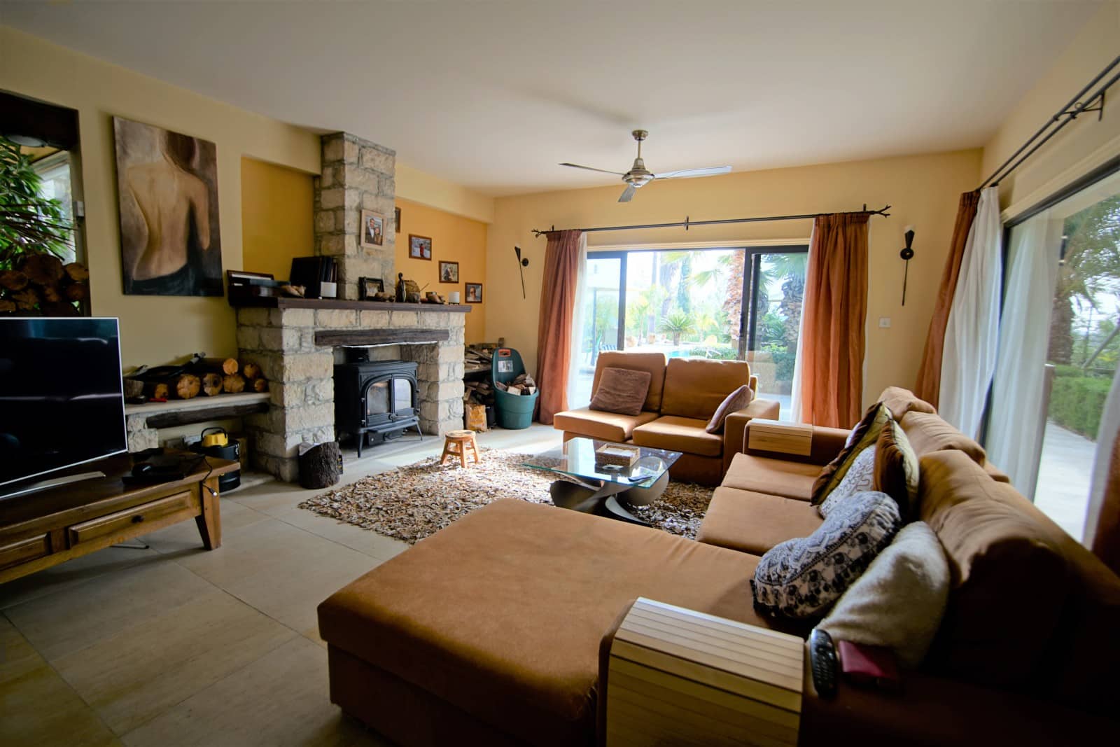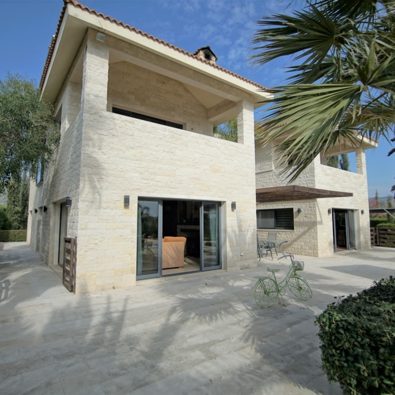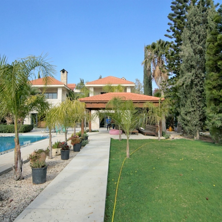 A bright 5 bedroom detached villa for sale in Pareklissia, Limassol. It is located in a quiet neighborhood just 7 minutes drive to the nearest beach and 15 minutes to the city center with all amenities nearby. There is an electric gate upon entering with driveway. The villa is split over 2 levels with its own private swimming pool and huge gardens on a 5000sqm plot. The ground level has a spacious entrance with massive windows allowing you to enjoy the outdoor views and natural light to come in. There is a separate kitchen with utility room, living/dining area with fireplace, 2 bedrooms with en-suite (1 is being used for office) and guest WC. Upstairs there are another 3 bedrooms with master en-suite and walk in wardrobe with family bathroom including the jacuzzi which overlooks the mountain views. The 2 bedrooms have an attic space which can be used as storage or another extra living space.