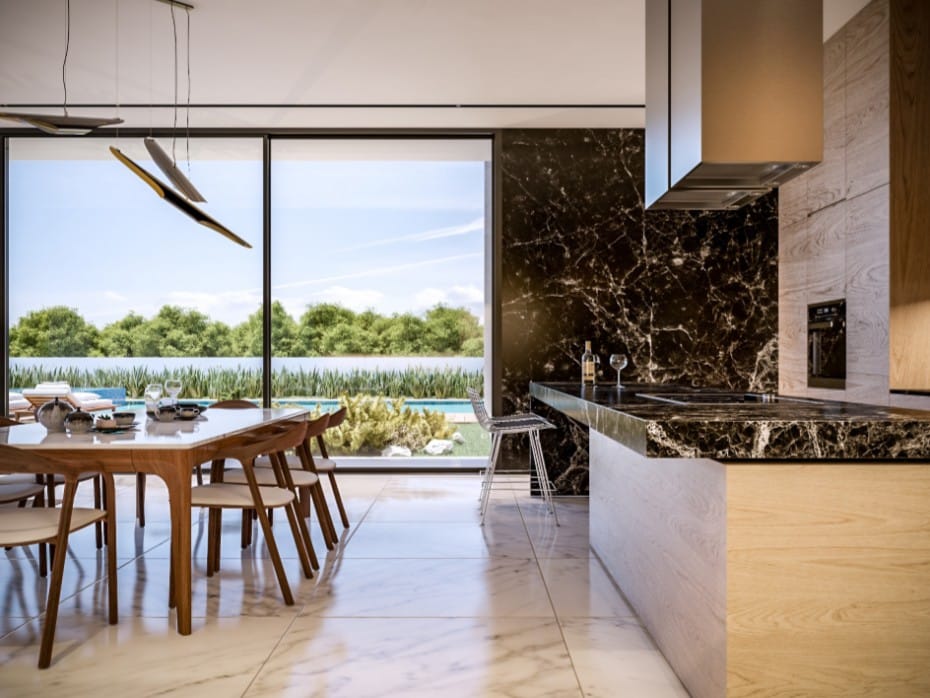 The villa is a deliriously designed residence, visually stunning, with dazzling inside-out architecture, and is intended for purchase. Offering the absolute luxury and cozy lifestyle to anyone seeking a home in Limassol, Cyprus, five minutes from the beach. This alluring villa located in Parekklisia Limassol enjoys the glorious view as the structure of the property is fully equipped with the finest glass design and the highest quality material. Each room of the dreamy villa comprises a timeless form and colors that will relax your senses. The ground floor comprises with lobby, a living area, a dining area, a kitchen, a breakfast area, a sitting area, a lift, staircase. The first floor consists of 3 bedrooms en-suite and a master bedroom with a wardrobe and en suite. In the outdoor area, there is a jacuzzi and a swimming pool, a fireplace near the BBQ area, a sitting area, and covered parking in addition to 3 guest parking slots.