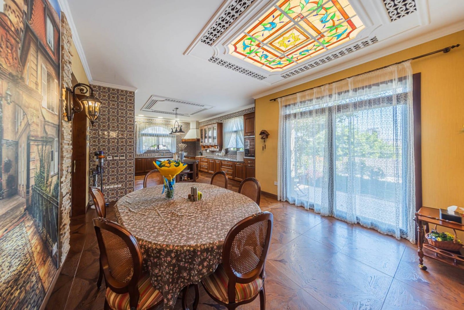 Villa for sale, located in the most attractive area of Potamos Germasogeia, Limassol, just 500 m from the coastline, this luxurious modern 4-level villa boasts 6 bedrooms, 7 bathrooms and a large private heated pool. Impressive home located in the most popular area among homeowners looking for a luxurious life in a quiet environment near the sea. The location in a dead-end street provides peace and comfort. This stunning villa was built in 2016 with all modern technologies in mind. Elegant Italian floors made of natural wood with heating, wooden windows with double glazing, wooden kitchen cabinets and wardrobes, granite countertops, wooden interior doors, VRV air conditioners. The villa is equipped with a video surveillance system, a photovoltaic system. On the ground floor there is a kitchen, a dining room, a living room and an office. From the living room you can access the covered veranda with fireplace and barbecue area and to the pool. The maid’s room with a bathroom on the 1st floor can be accessed using a separate entrance, which provides privacy in the main rooms. Also on the 1st floor there is a gym, a large game room and a laundry room with a kitchen. The second floor includes three bedrooms with bathrooms. The third floor consists of 2 bedrooms with bathrooms and access to an open veranda. The villa boasts a garage for 2 cars, an outdoor parking space for 2 cars, a storage room, a playground, a pond with fish, a beautiful, mature garden, a server room, a sauna, a Jacuzzi in the pool, an elevator. The villa is fully furnished and equipped with all necessary appliances, surrounded by the latest technological cameras and a first-class alarm system and shade lamps, etc. The house is built using the latest technology and has many different functions. There is a title.