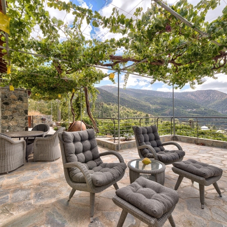 Welcome to this charming 2-bedroom villa in Prodromos, nestled in the highest village of the Troodos Mountains. Here, you’ll enjoy fresh, crisp mountain air and spectacular views all year round. The villa, designed in a cozy chalet style, combines wood and stone elements, creating a warm and inviting atmosphere. Inside, you’ll find an open-plan kitchen perfect for entertaining, and a fireplace to keep you warm during the cooler months. The villa also features underfloor heating and an electric sauna, ensuring your comfort year-round. This nearly new, fully equipped home is built with modern technologies, offering two spacious bedrooms, each with ensuite bathrooms, and two additional storage rooms. Outside, the luxury continues with a fully electric BRUSTOR pergola, complete with two built-in heaters and roll-down shutters, providing an ideal space to enjoy the outdoors regardless of the weather. The lovely garden, adorned with a “grape roof,” offers a delightful setting for outdoor cooking and dining. Additionally, there is a designated area where you can plant your own plants, fruits, or vegetables, making it perfect for garden enthusiasts. Whether you’re looking for a perfect holiday retreat or a cozy year-round residence, this villa in Prodromos offers an exceptional living experience in the heart of nature.
