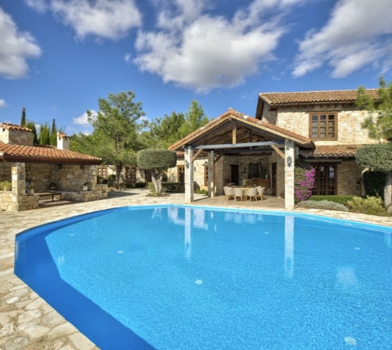 Gorgeous 7 bedroom detached villa for sale in Souni, Limassol. Villa with unique style offers an ambience of a classic and roman architecture decisions. The villa consists of 2 levels and has an ample day- lounge room, kitchen with family room, living room, dining room, sitting room, master bedroom with separate dressing area & utility room. It offers guests cloakroom while the first floor has another 3 en suite bedrooms. Privately settled villa offers an incredible garden with a private swimming pool, covered bar, dining area and veranda for a comfortable gather outside. Quiet neighborhood, perfect location, unique project, area surrounded with a pine trees to enjoy a full fill life moment in the outskirts of Limassol in one of the prestigious area – Souni.