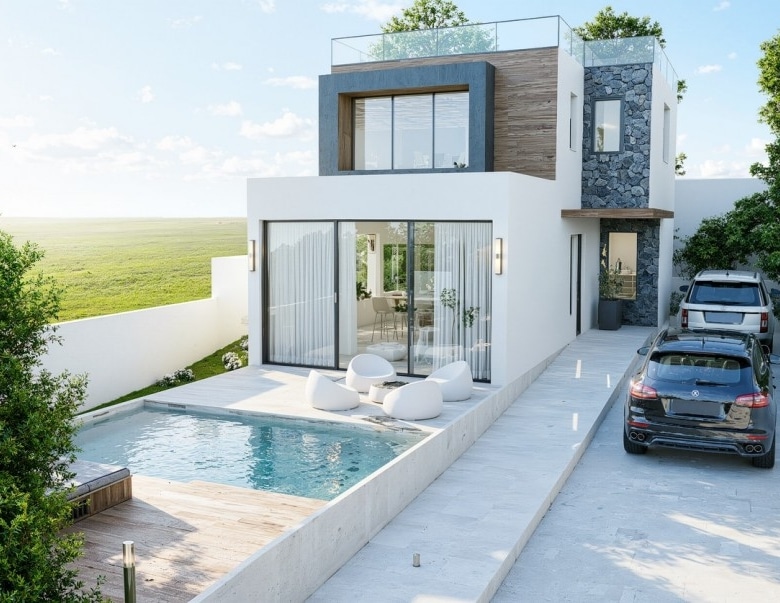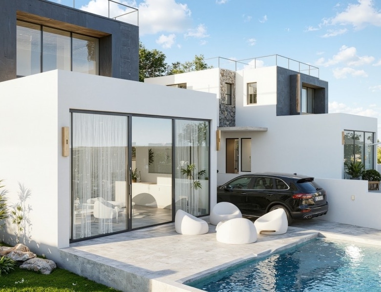 The project offer both tranquility and sleek contemporary design located in Souni, Limassol. Three – bedroom independent house has1 on the ground floor & 2 upstairs – all ensuite. The propery owns private swimming pool & deck, private veranda for relaxing outdoor living.