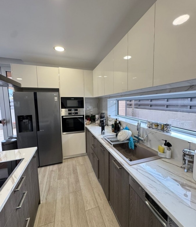 This modern 4-bedroom detached house offers 190 m² of internal space on a 453 m² plot, providing a spacious and comfortable living environment.