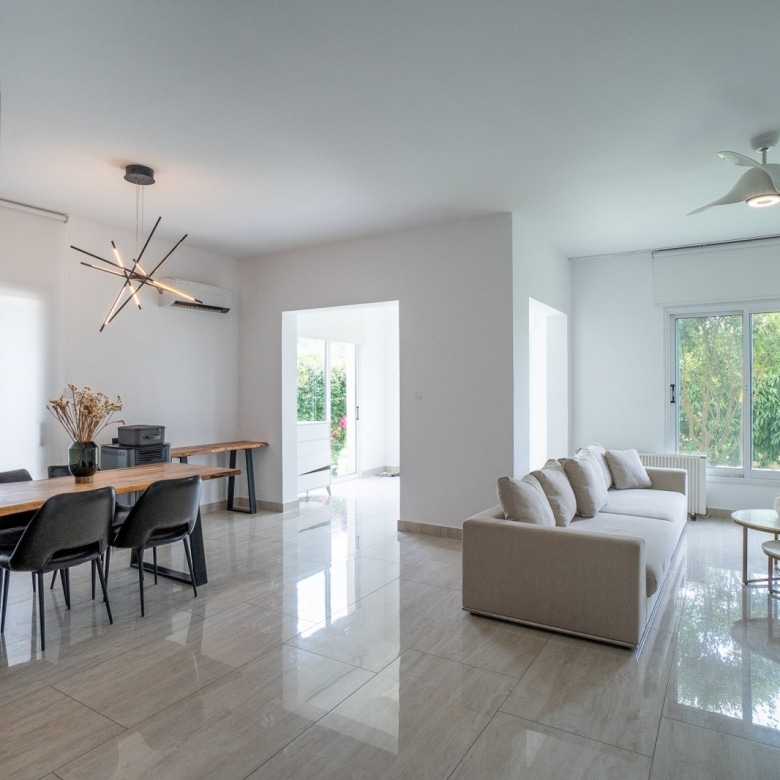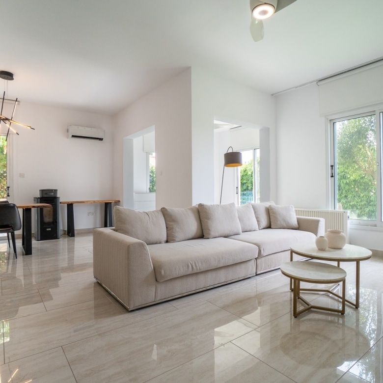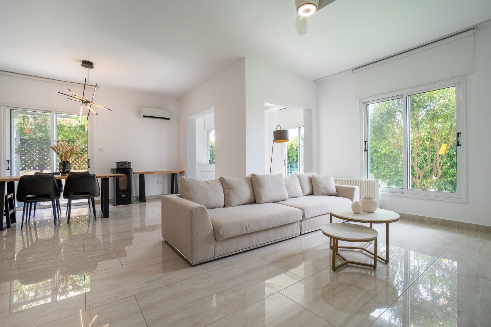 This beautiful 3-bedroom villa is situated in the peaceful Anavargos area of Paphos, offering an ideal setting for both a residential or holiday home. Conveniently located, it’s less than a 2-minute drive to the hospital and just 4 minutes from the International School of Paphos. The villa boasts unobstructed, permanent views and is positioned in a quiet neighborhood.