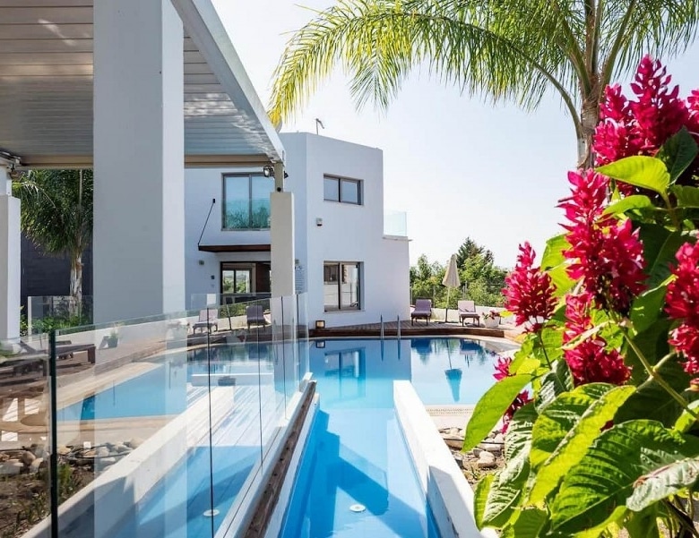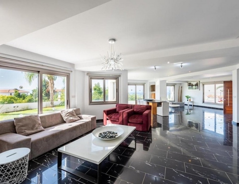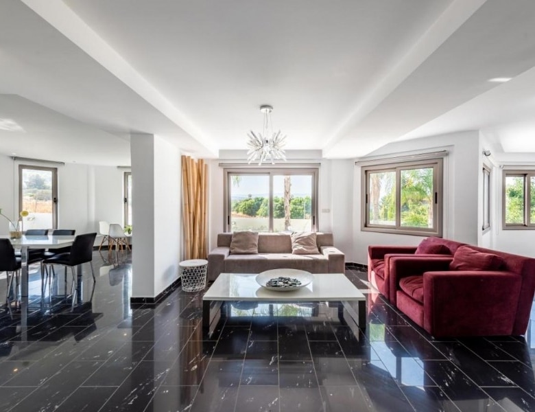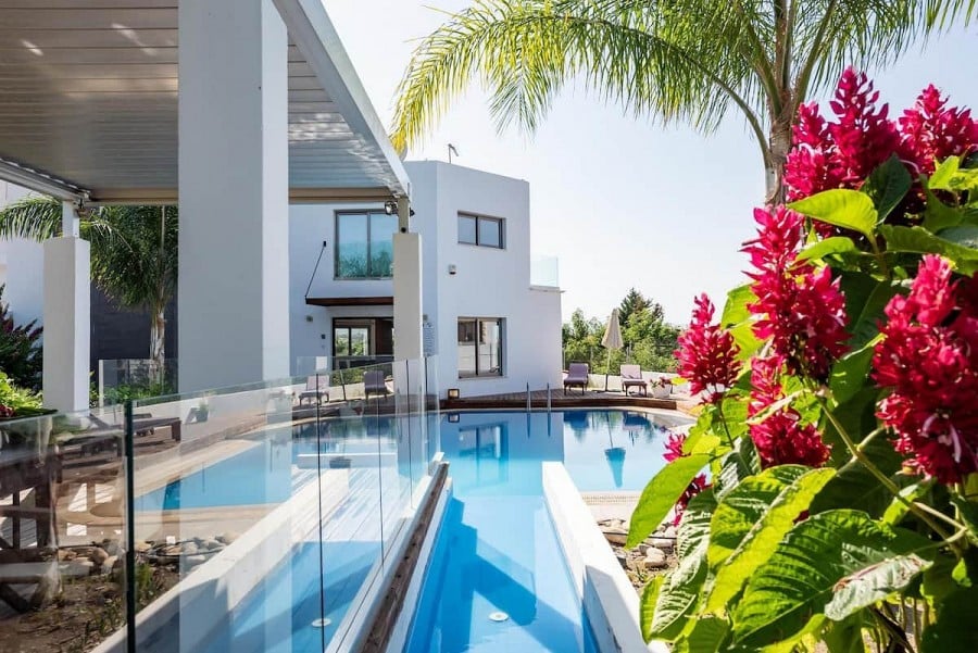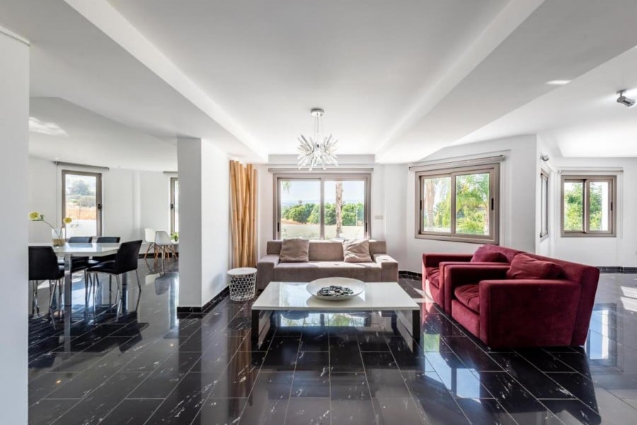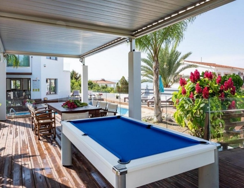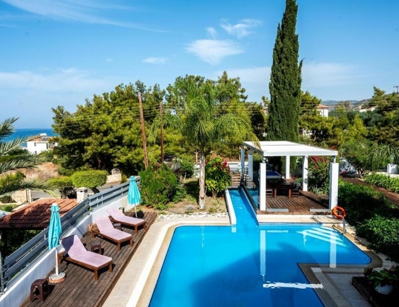 Breathtaking 360° views, sea and mountain, define this villa in the Polis Chrysochous area. Set in an elevated location on the foothills of Argaka Village overlooking the Akamas National Park, it is a truly unique holiday home and a full-on experience of contemporary interiors set in organic, tranquil surroundings. Luxurious 3-bedroom stunner providing an exclusive retreat for anyone seeking a private haven in arguably the most naturally beautiful area of the island. The villa has its own private, heated pool sized at 30 x 23 ft and 3-6 ft depth. A large pergola / patio overlooks the swimming pool. Inside the villa, the ground floor living area is spacious and elegant, with large windows and patio doors which tease the eye and flood the space with bright, natural light. As you enter, you will find a fabulous lounge area with open plan kitchen and fully equipped with high quality appliances and is next to a casual, secondary dining space with table and chairs. All 3 bedrooms are located on the first floor. There is 1 double bedroom with access on 2 sides to the shared balcony with magnificent views of Akamas National Park towards the sea. The twin bedroom also has access to this balcony. These 2 bedrooms share a separate bathroom. The remaining bedroom is a double with an en suite shower room and access to the balcony. The WC is located on the ground floor.
