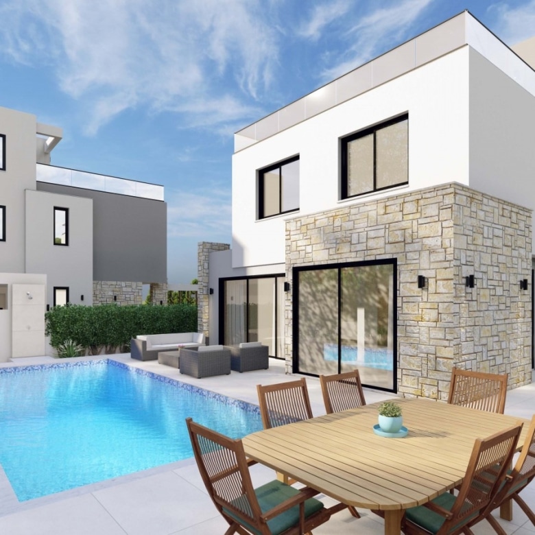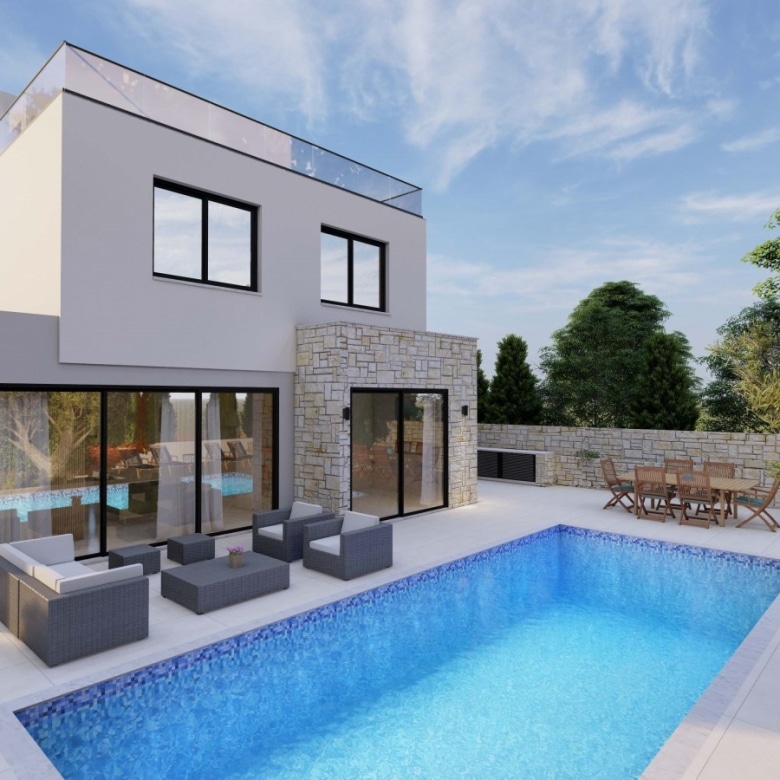 Spectacular villa with 3 bedrooms plus 1 room on the Roof Terrace, 3.5 bathrooms and a swimming pool in a quiet area, Chloraka.