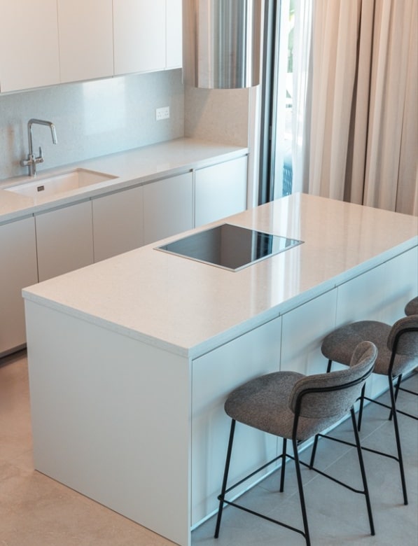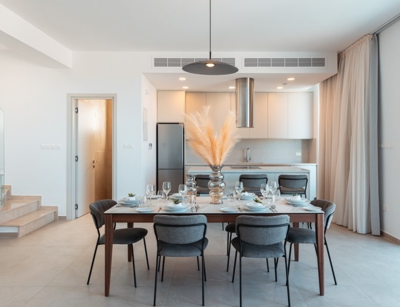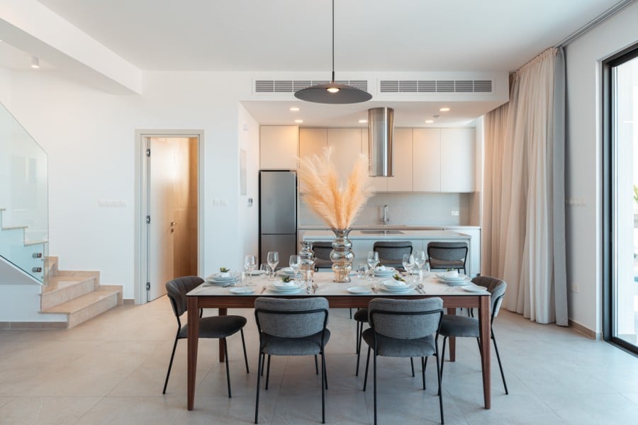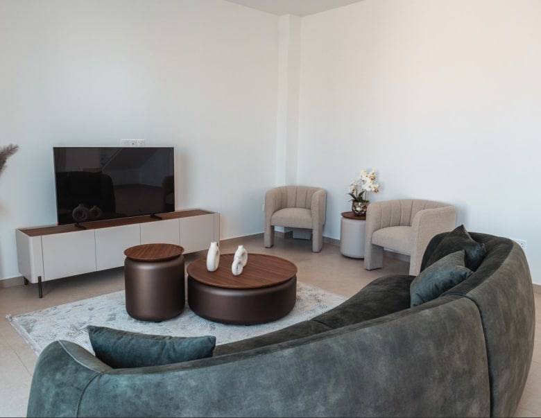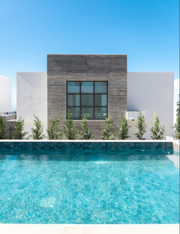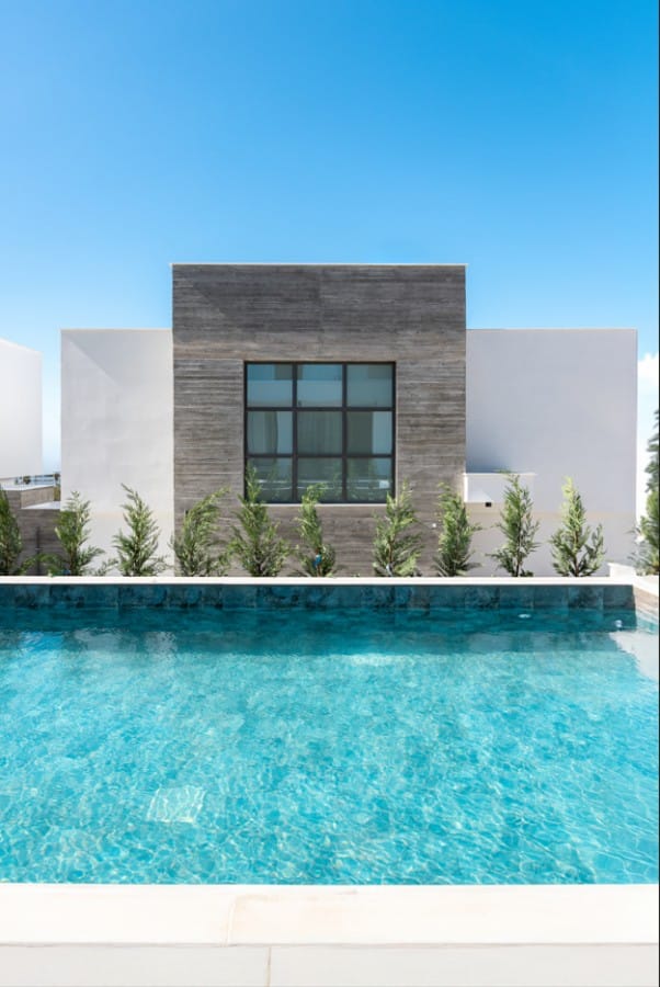 Nestled in Chloraka’s prestigious district, are 7 remarkable three-bedroom villas within a luxury complex in Paphos. With stunning sea views, these modern homes blend seamlessly with the lush Mediterranean surroundings. Just a short walk from the sea, residents can enjoy tranquility and breathtaking sunsets. Close to pristine beaches and upscale hotels, these luxurious villas epitomize seaside living. The sleek architecture features clean facades and minimal ornamentation, harmonizing with the natural environment. Perched on a hillside, the villas maximize views of the greenery, creating a peaceful atmosphere. This modern complex provides a range of amenities, including nearby restaurants, shops, schools, and supermarkets, ensuring convenience for residents. Every detail has been meticulously designed, incorporating modern materials like glass, aluminum, and concrete. Expansive windows bathe the interiors in natural light, accentuating the carefully chosen color palette that blends with nature. With spacious layouts and high-end finishes, each villa offers privacy and luxury. From warm wood flooring in the bedrooms to exquisite Italian tiles leading to a private terrace and infinity pool, no detail has been overlooked. Built with sustainability in mind, these sea view villas feature energy-efficient cooling, thermal insulation, and upgraded aluminum.