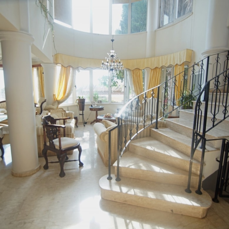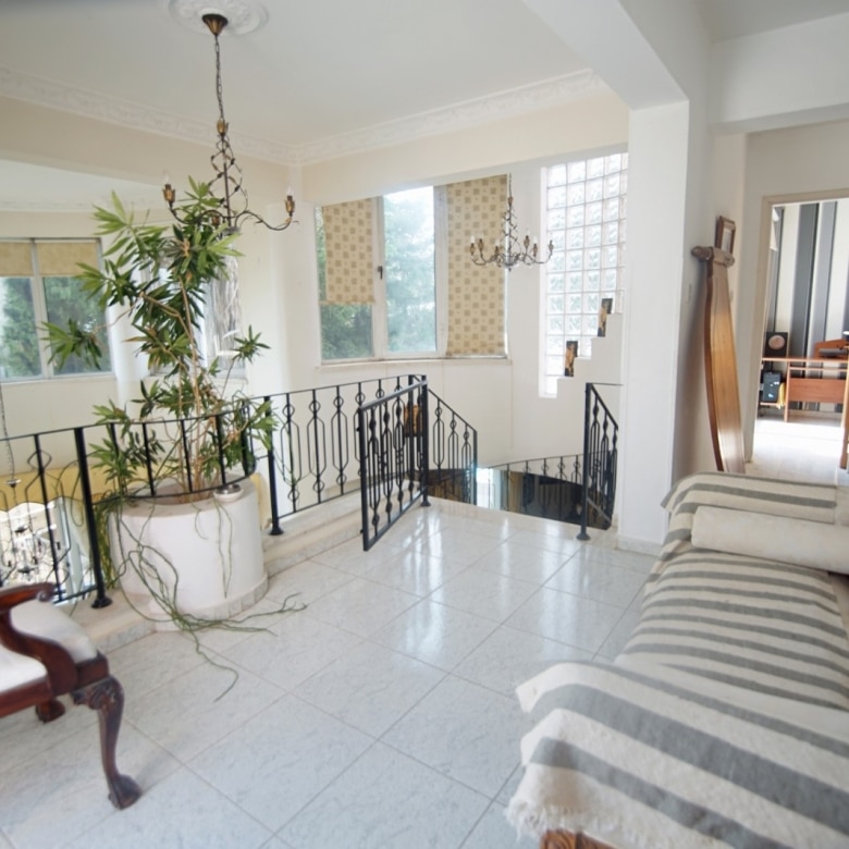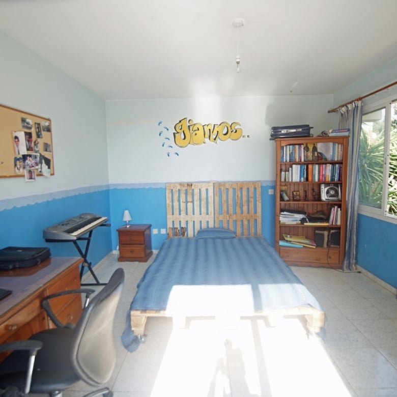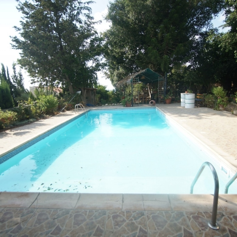 7 bedroom 3 bathroom 370m2 covered detached villa situated in heart of Chloraka close to the St.George Hotel and a short drive to Coral Bay. The villa is situated on a 2676m2 plot ,just a few hundred meters from the beachfront and benefits from air conditioning, study, marble stairs and private pool. Through the front door you enter into the entrance hall with extremely bright living area, to the right hand side,  curving stairs rising to the first floor where are located 3 double bedrooms, family bathroom, 2 balconies. Ground floor comprises from separate spacious kitchen with a small sitting area offering a fire place, master bedroom, guest toilet, 2 rooms witch can be used as an office or a gym room.