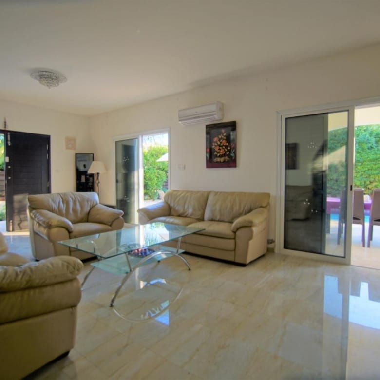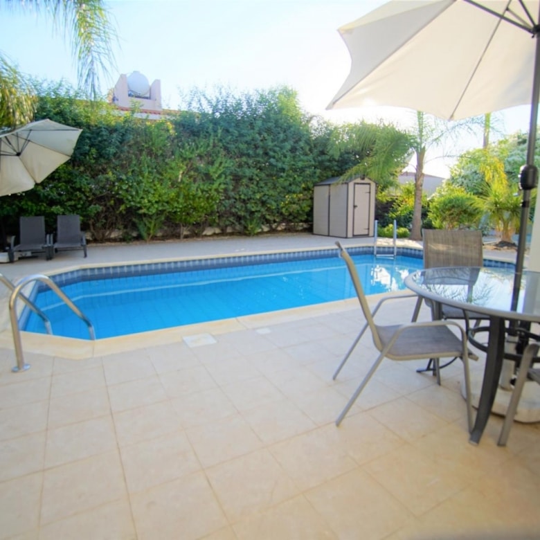 Lovely house, situated in the center of the traditional Cypriot Village of Emba. Walking in the front door you are met by the large living area with the dining and kitchen area to your immediate right. The house is also equipped with a guest toilet on the ground floor. Upstairs there are 3 large double bedrooms, the master bedroom has its own en suite bathroom and there is another to accommodate the other 2 bedrooms. Outside you are blessed with a large garden and pool area with plenty of space for entertaining and relaxing.