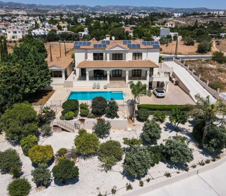 A stunning luxurious seven bedroom detached house for sale in Emba. This spacious property stands on a large plot, finished to the highest standard and with fantastic views. There are three floors with a lift installed, the furniture is negotiable. Title deeds are available. The villa is fully air conditioned, has central heating and a fire place. There is a private swimming pool surrounded by terraces and a lovely mature garden with a built-in irrigation system. The property is located on the edge of Emba village within walking distance to the amenities of the village and only a short drive to Pafos Harbour and the lovely beaches of Coral Bay. Emba is conveniently close to the leisure and entertainment facilities of Pafos making this an ideal location for a family home and within easy reach of the Troodos Mountains An exclusive property for the right buyer. Air Conditioning Photovoltaic Systems Water Bore Hole for Pool & Garden Irrigation Central Heating Elevator Mountain & Sea Views Private Parking (covered) Private parking (uncovered) Private swimming pool Kitchen Kitchenette Utility room Title deeds available Allowance to build further Covered Area 1050 sqm