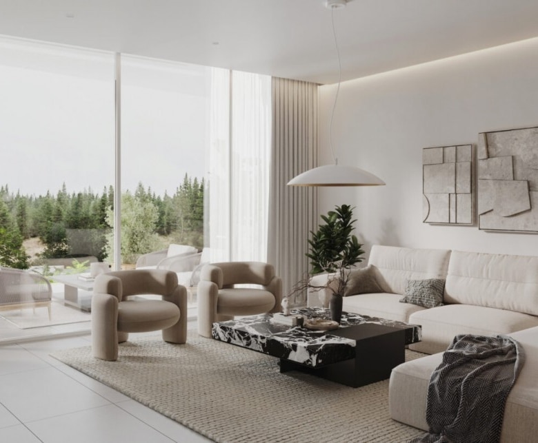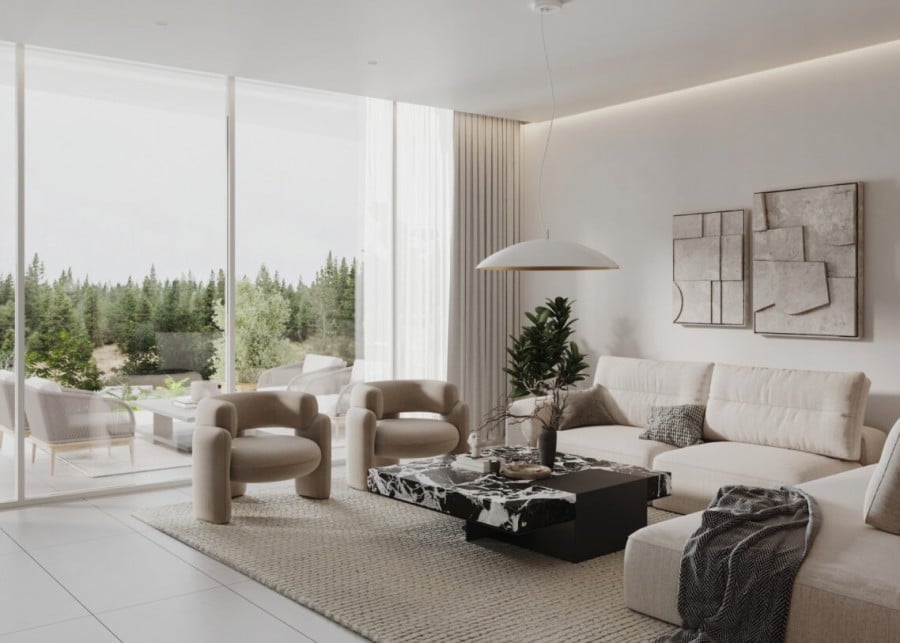 A complex of two spacious 3 bedroom villas with stunning sea views in Agia Marinouda area, Paphos next to ELEA GOLF and just 5 minutes from the most popular sandy beach of Paphos and the city center, easy access to Limassol Highway and Elea Golf Club. Suitable for discerning buyers. The villas have external thermal insulation, high-quality finishes, water pressure system, solar heater, VRV system, suspended ceilings and underfloor heating. The houses have a modern design. It is possible to install photovoltaic systems and charging for an electric vehicle. There is a rooftop garden with a beautiful view of the sea. The plots have a barbecue area with an outdoor shower and a swimming pool. All amenities are within a short drive, including a supermarket, kiosks, coffee shops, bakeries and a golf course.