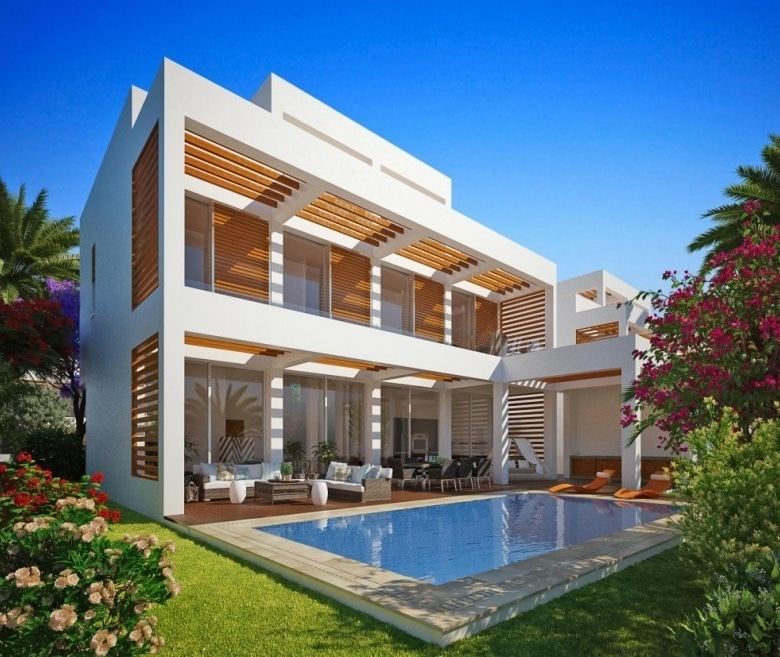 A modern design 3-bedroom villa for sale, located in the heart of the tourist area of Paphos in Cyprus. The property is designed in a large plot and enjoys a private swimming pool with spacious outdoor areas. The villa is located in front of one of the most famous sandy beaches in Paphos and enjoys easy access to a variety of restaurants, pubs, bars, 5-star beach resorts, and other amenities.