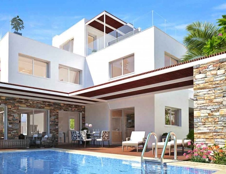 The property is a modern design 4-bedroom villa for sale, located in the heart of the tourist area of Paphos in Cyprus. The villa is designed on a large plot and enjoys a private swimming pool with spacious outdoor areas. The villa is located in front of one of the most famous sandy beaches in Paphos and enjoys easy access to a variety of restaurants, pubs, bars, 5-star beach resorts, and other amenities.