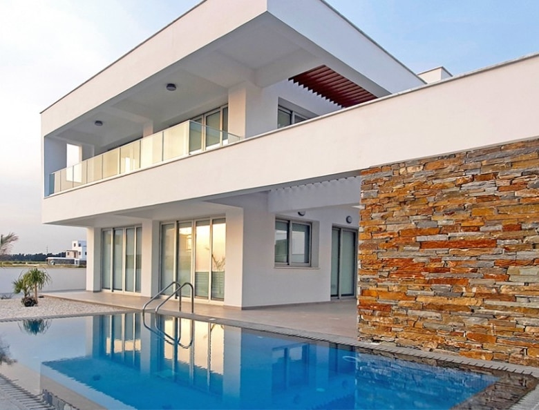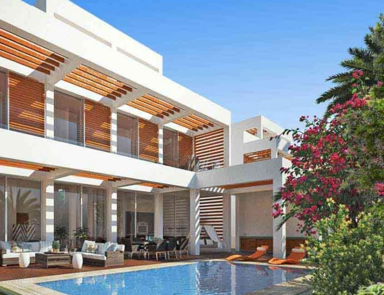 The property is a modern design 4-bedroom villa for sale, located in the heart of the tourist area of Paphos in Cyprus. The villa is designed on a large plot and enjoys a private swimming pool with spacious outdoor areas. The villa is located in front of one of the most famous sandy beaches in Paphos and enjoys easy access to a variety of restaurants, pubs, bars, 5-star beach resorts, and other amenities.