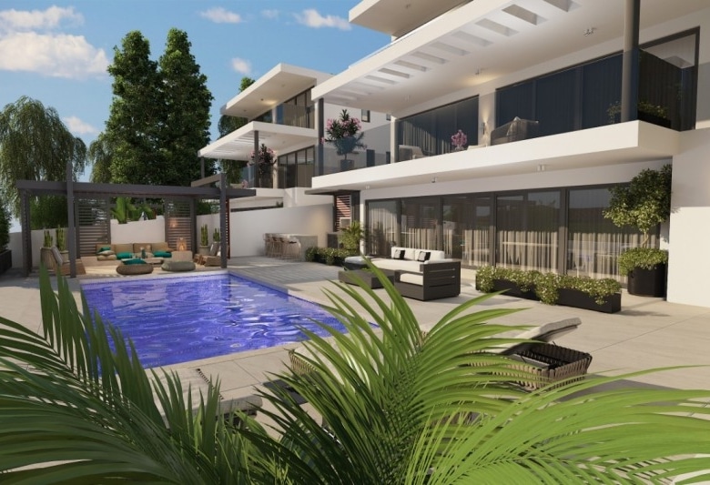 Luxury villas in Geroskipou with unobstructed views of the Mediterranean Sea. Spacious open plan living room, kitchen connecting to the outside area with private swimming pool.  The dining area offering magnificent views of the Mediterranean Sea. Two bedrooms on the ground floor with a shared bathroom and three bedrooms on the second floor with en-suite showers.  Energy-saving features offering maximum thermal insulation and soundproofing.  Geroskipou is a coastal town in Cyprus, east of Paphos. It is the second-largest municipality in the Paphos District.