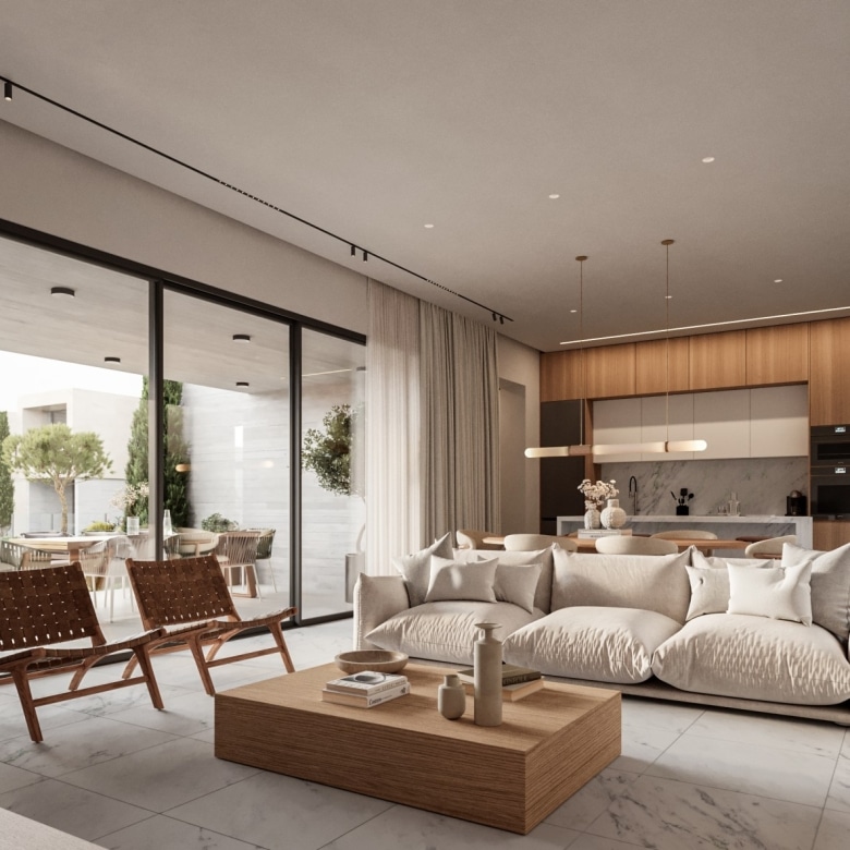 Dive into the luxury and peacefulness where flaming sunsets and turquoise waters blend in perfect harmony, offering an unparalleled sanctuary of seaside serenity. Nestled within the vibrant tourist enclave of Kato Paphos, the project is an exclusive collection of 20 luxurious 3- and 4-bedroom villas designed to elevate your life experience to new heights. Each villa is a masterpiece of contemporary elegance, boasting sleek architecture that seamlessly blends with the natural beauty of the Mediterranean coastline. With the gentle breeze carrying the scent of the sea and the sun-kissed sands just steps away, it embodies the epitome of coastal living. Imagine waking up to the gentle whisper of the sea and basking in the golden sunlight that floods through your windows. Spend leisurely afternoons lounging by the expansive communal swimming pool, where you can soak in the sun and immerse yourself in blissful relaxation. Beyond the gates of project, the coastal walkway lies ahead, where you can enjoy a calming stroll to witness the golden skies where the sun meets the horizon. By night, countless restaurants of all cuisines and places to enjoy a drink await on the way to Kato Paphos.