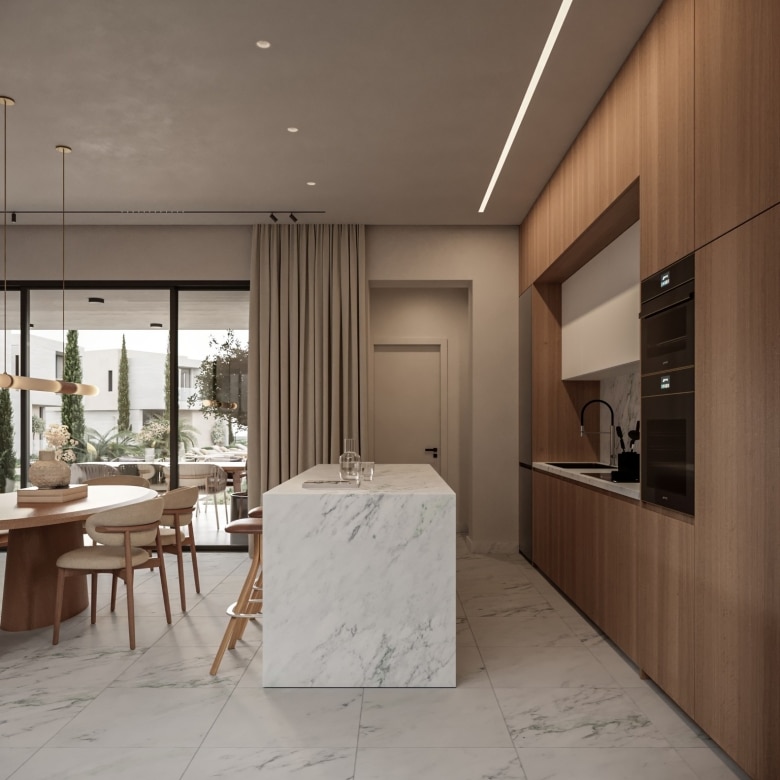 Dive into the luxury and peacefulness where flaming sunsets and turquoise waters blend in perfect harmony, offering an unparalleled sanctuary of seaside serenity. Nestled within the vibrant tourist enclave of Kato Paphos, the project is an exclusive collection of 20 luxurious 3- and 4-bedroom villas designed to elevate your life experience to new heights. Each villa is a masterpiece of contemporary elegance, boasting sleek architecture that seamlessly blends with the natural beauty of the Mediterranean coastline. With the gentle breeze carrying the scent of the sea and the sun-kissed sands just steps away, it embodies the epitome of coastal living. Imagine waking up to the gentle whisper of the sea and basking in the golden sunlight that floods through your windows. Spend leisurely afternoons lounging by the expansive communal swimming pool, where you can soak in the sun and immerse yourself in blissful relaxation. Beyond the gates of project, the coastal walkway lies ahead, where you can enjoy a calming stroll to witness the golden skies where the sun meets the horizon. By night, countless restaurants of all cuisines and places to enjoy a drink await on the way to Kato Paphos.