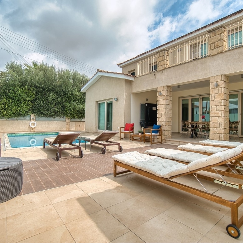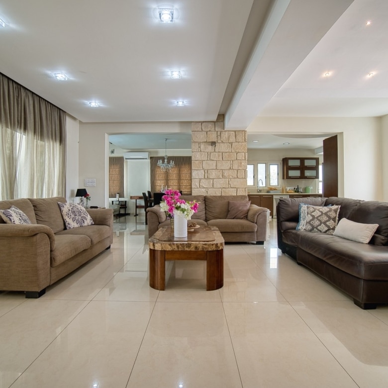 Luxurious villa in Kato Paphos, Cyprus. The villa boasts six bedrooms and five bathrooms, making it spacious and ideal for large families. Its prime location in the Universal area puts it within a convenient distance of various amenities such as hotels, the harbor, a mall, and Paphos town, all reachable within a short 5-minute drive. Despite its proximity to these amenities, the villa enjoys a peaceful atmosphere in a quiet neighborhood, offering the best location. The property comes fully furnished, ensuring comfort and convenience for its occupants. Additionally, it features modern amenities such as a private swimming pool, voltaic systems for energy efficiency, security cameras, and an alarm system for added safety. Car owners will appreciate the garage space available for 3 to 4 cars, along with two storage areas for added convenience. The presence of a fireplace adds a cozy touch, while full air-conditioning throughout the villa ensures comfort regardless of the season. Overall, this villa seems like an ideal retreat for those seeking luxury, convenience, and tranquility in the beautiful surroundings of Kato Paphos.
