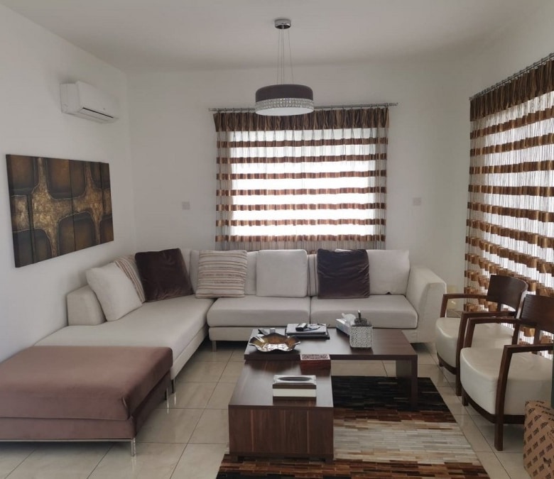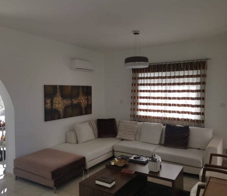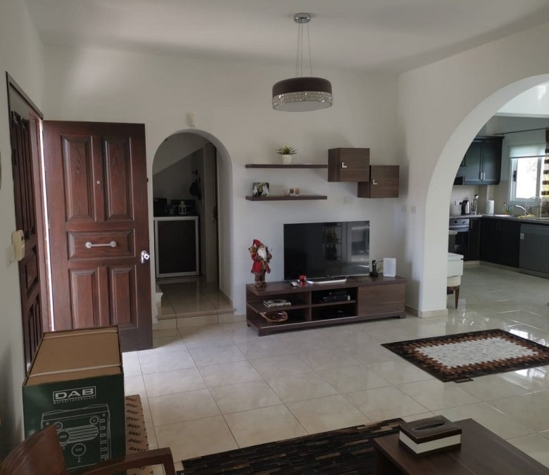 Villa in the area of Kissonerga for sale. Private swimming pool and outside garden, entertainment area and a small garden in the front. The master bedroom is en-suite with it’s own shower. The other two bedrooms are bright and spacious. The property is situated in a cul-de sac and has high resolution cameras surrounding and alarm system. There is parking space for 2 cars. The kitchen and living area is open plan, the property is also fully furnished and equipped with quality pieces.
