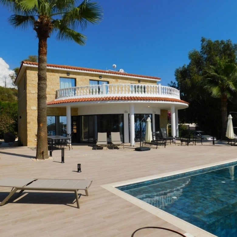 Luxury Villa 3 Bedrooms & 2 Bathrooms for sale in a beautiful location with amazing views of Kissonerga coastline. Finished to a high standard with quality fixtures & fittings. Real Oak flooring throughout upstairs. Master bedroom has en-suite showroom.